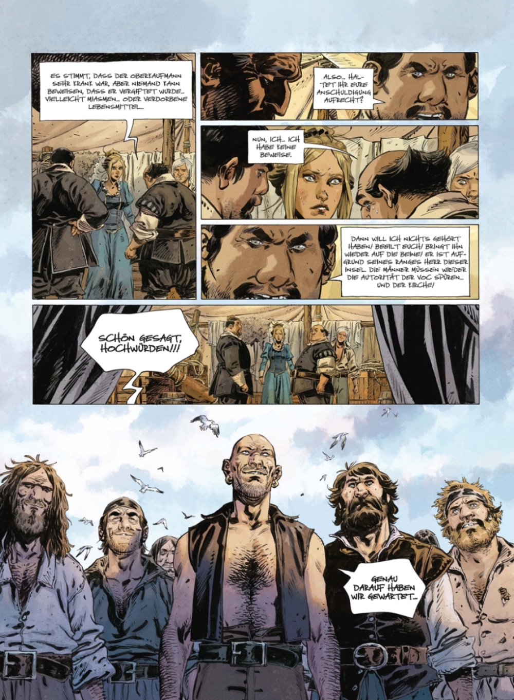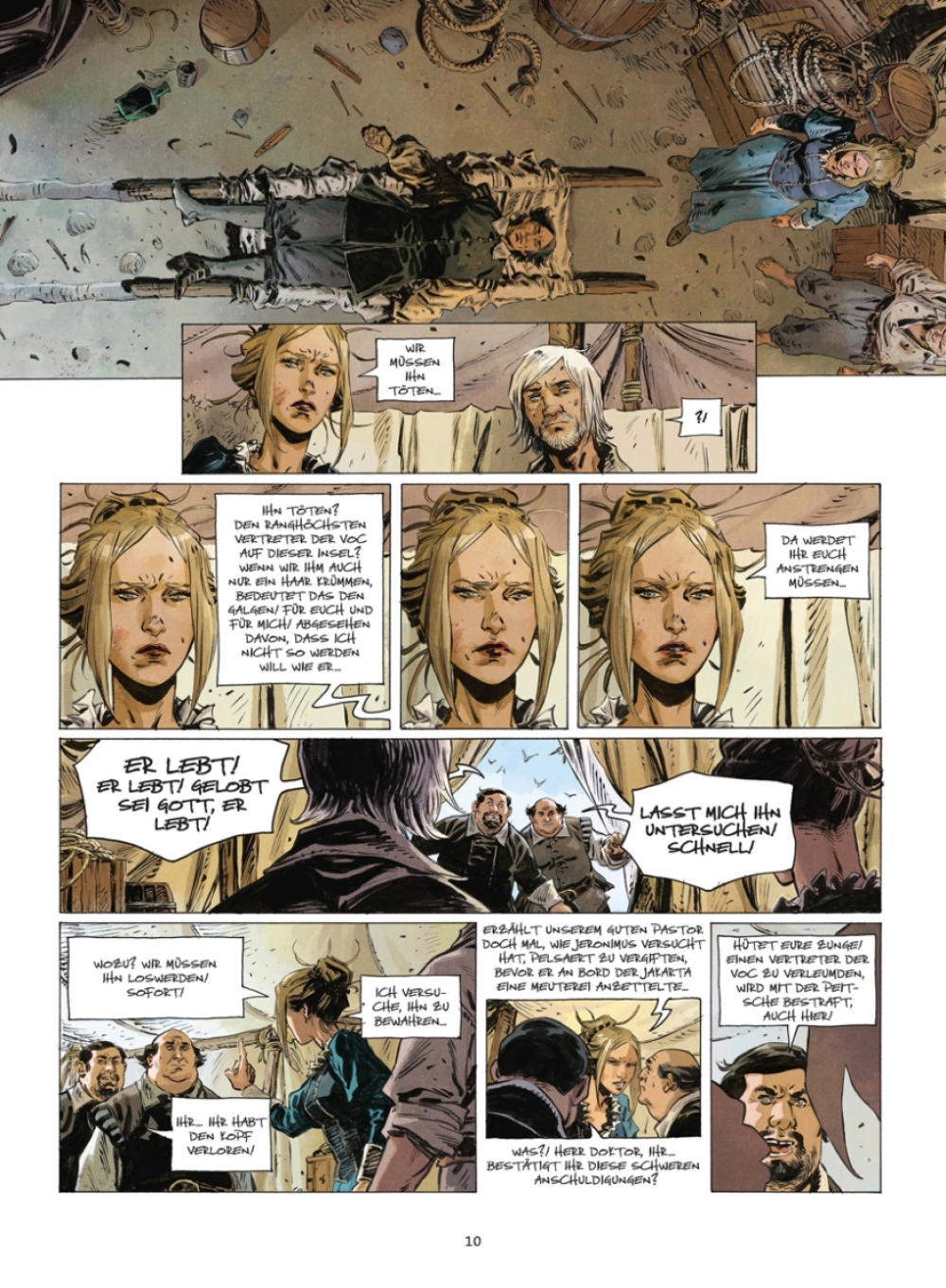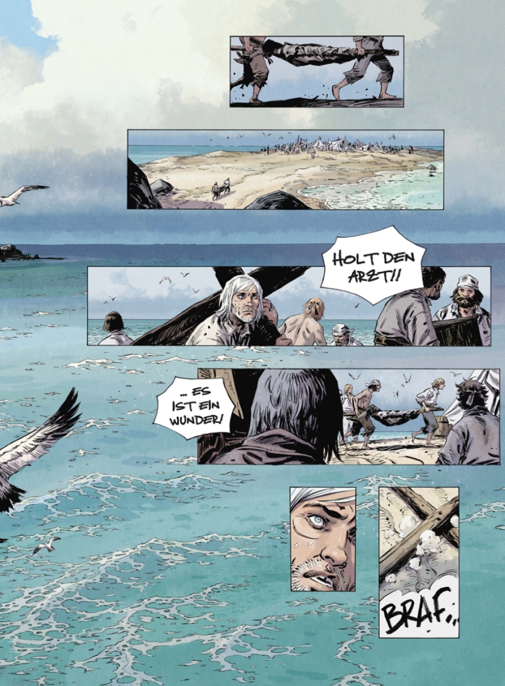 Dieser maritime Psychothriller in zwei Bänden greift eine der schrecklichsten Begebenheiten der Seefahrtsgeschichte auf, den Schiffbruch und die Meuterei auf der »Batavia«. Gier und Grausamkeit, Wahnsinn, Massaker und Überlebenskampf werden von Xavier Dorison meisterhaft zu einem intensiven Stoff verwoben, der von Thimothée Montaigne auf der Höhe seines Schaffens kongenial illustriert wird.