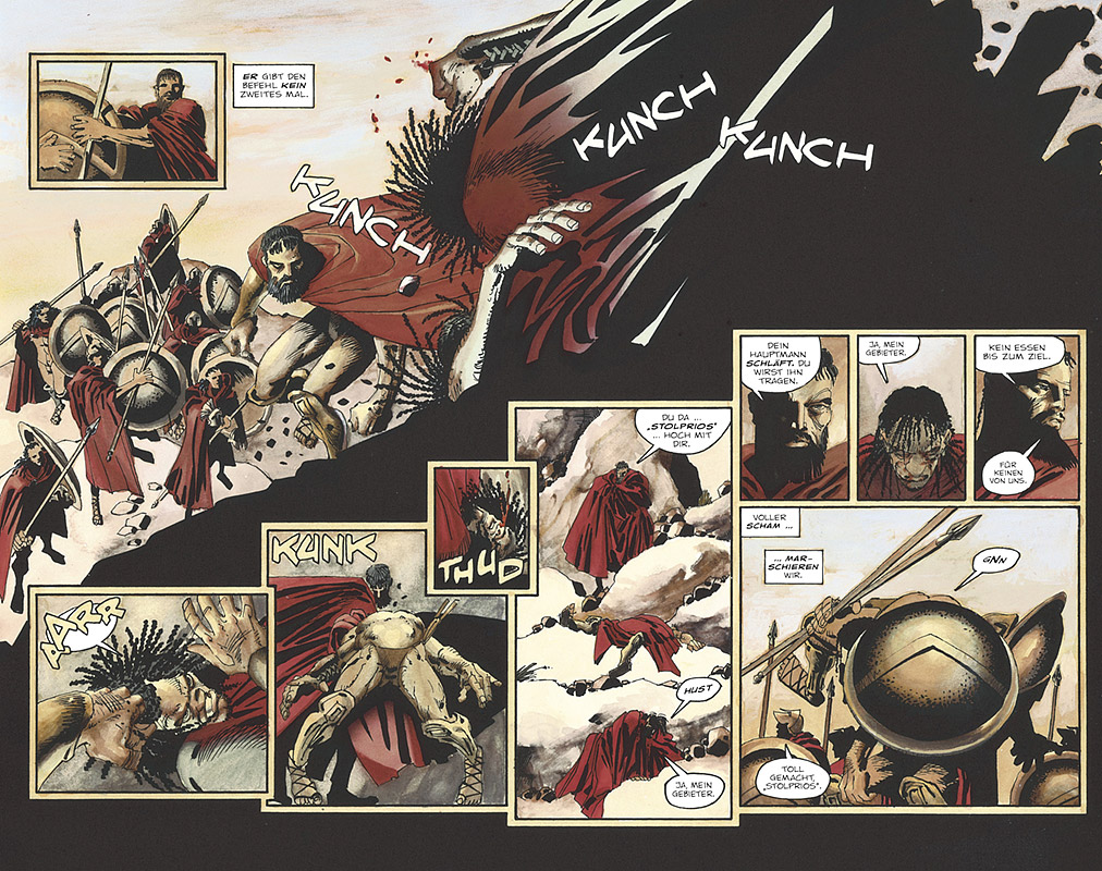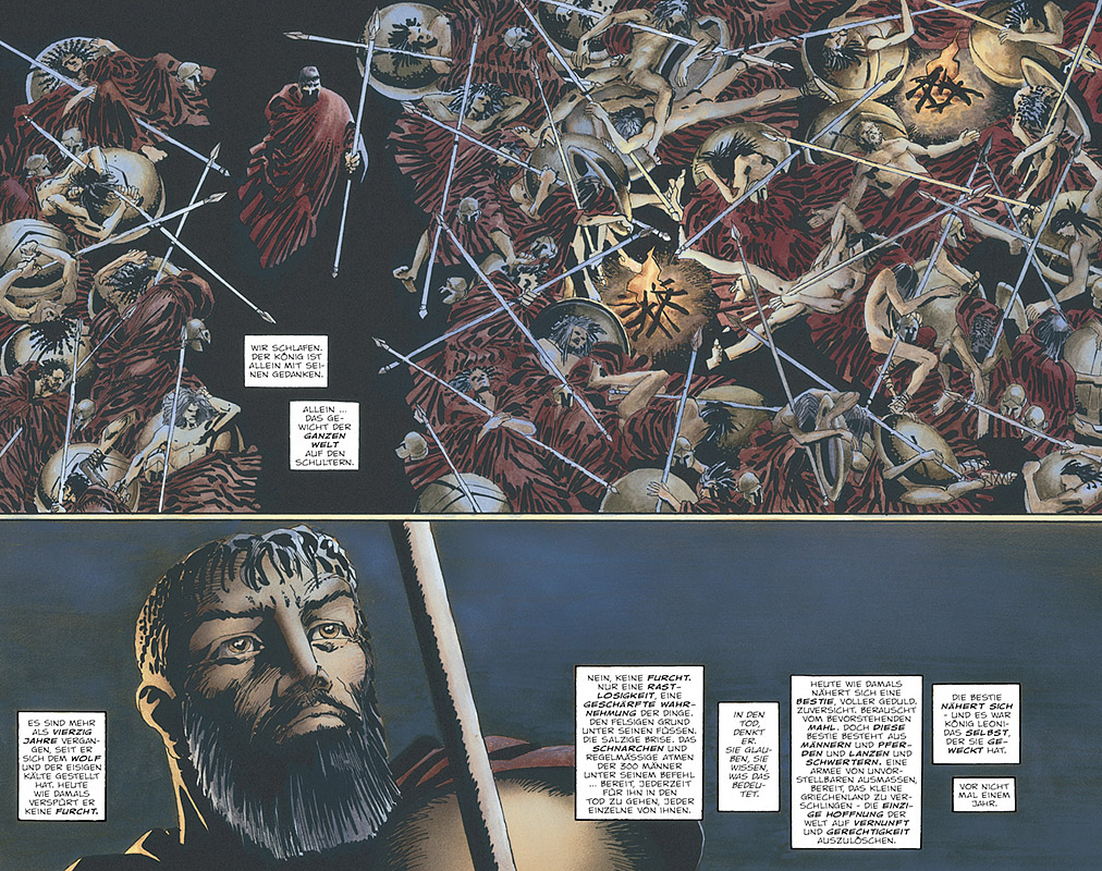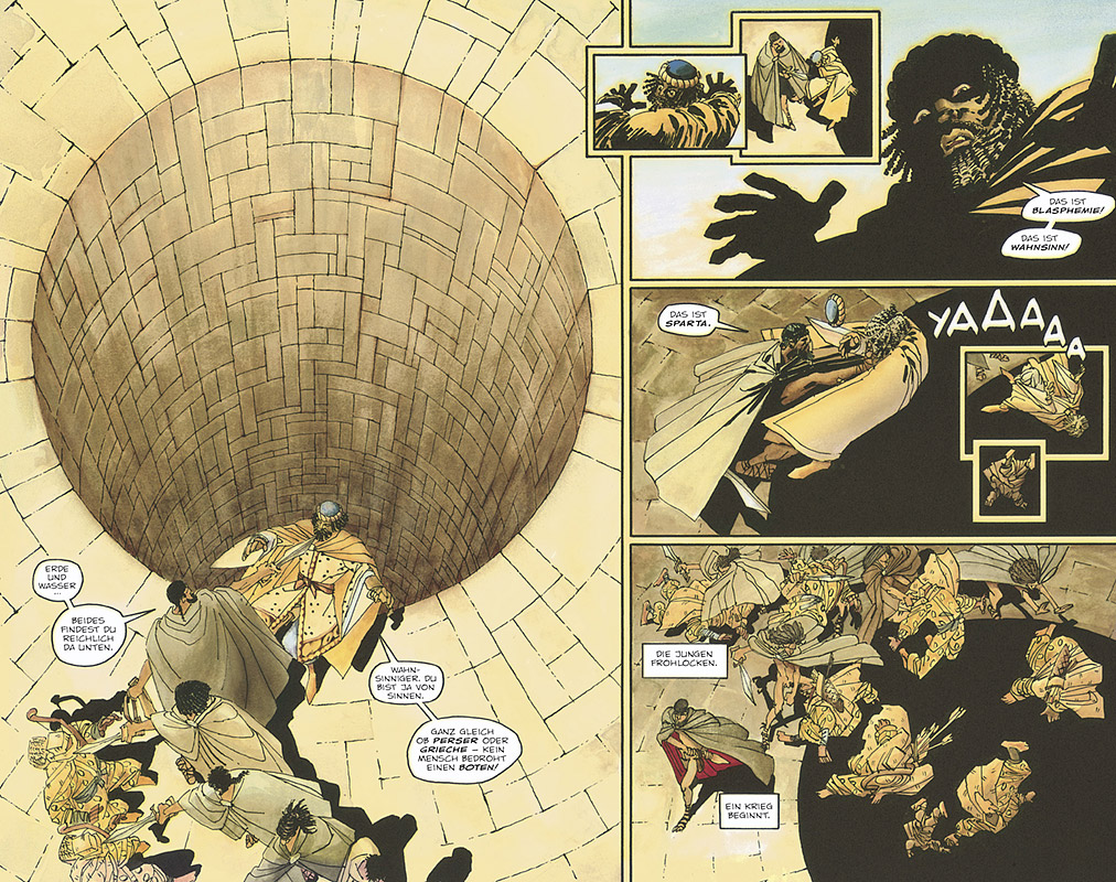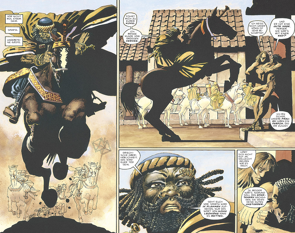 Später produzierte Miller, mit Dave Gibbons als Zeichner, die satirische Science-Fiction Serie GIVE ME LIBERTY/MARTHA WASHINGTON, die eine düstere und chaotische Zukunft der USA durch die Augen einer jungen, schwarzen Kämpferin aus den Slums zeigt. Gemeinsam mit Geoff Darrow kreierte er die Graphic Novel HARD BOILED, eine 100 Seite vollkommen sinnfreie Gewaltorgie, die sehr viel Spaß macht. 1998 führte Miller seinen Lesern mit der Miniserie 300 einen weiteren Aspekt seines kreativen Geistes vor. Noch einmal kommt Miller hier auf das Thema des griechisch-persischen Krieges zurück. Das auch rein optisch prachtvolle 300 wurde sowohl innerhalb der Comicszene als auch beim breiten Publikum zum riesigen Erfolg und gewann drei der renommierten Eisner Awards.