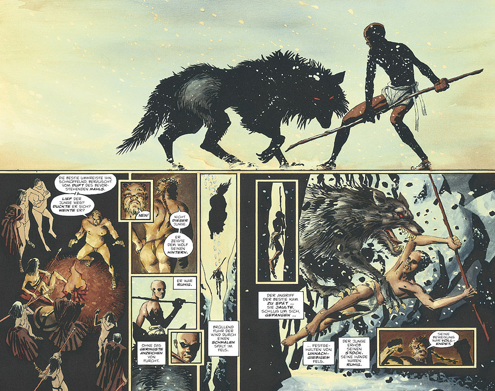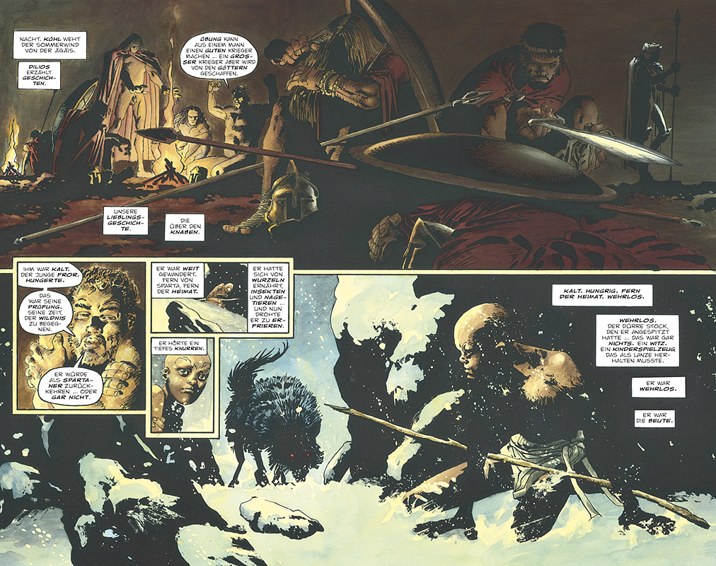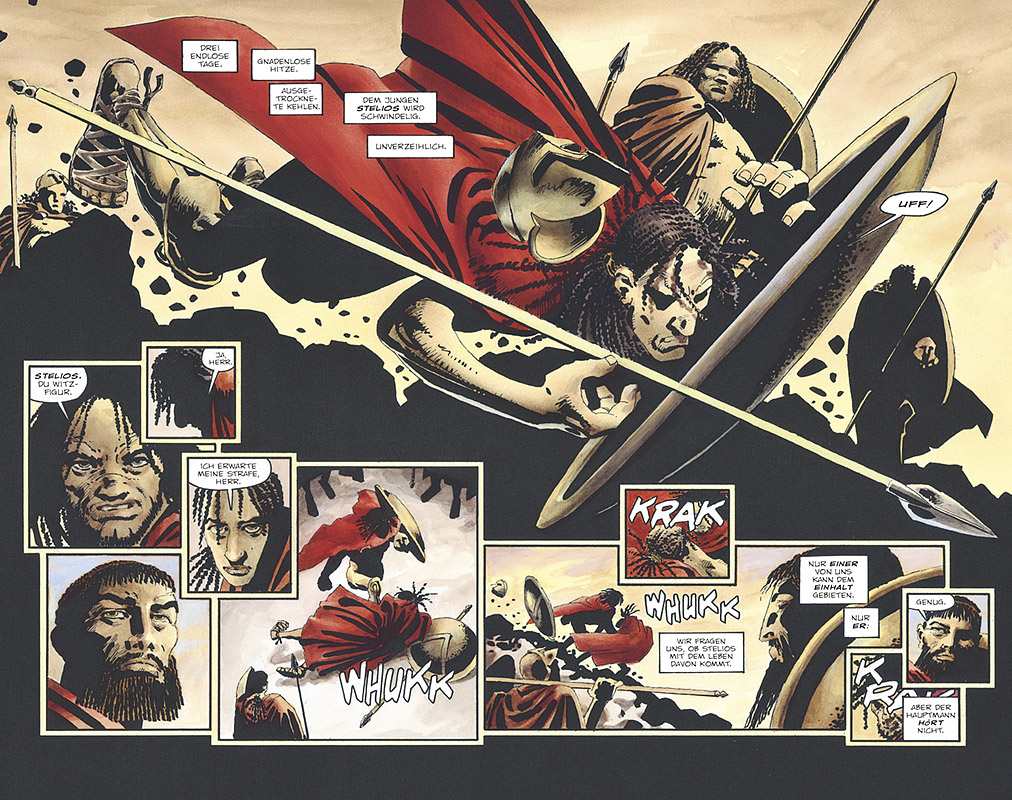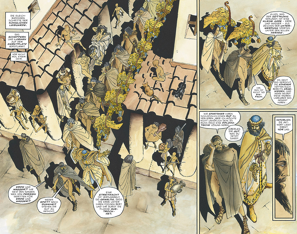 Später produzierte Miller, mit Dave Gibbons als Zeichner, die satirische Science-Fiction Serie GIVE ME LIBERTY/MARTHA WASHINGTON, die eine düstere und chaotische Zukunft der USA durch die Augen einer jungen, schwarzen Kämpferin aus den Slums zeigt. Gemeinsam mit Geoff Darrow kreierte er die Graphic Novel HARD BOILED, eine 100 Seite vollkommen sinnfreie Gewaltorgie, die sehr viel Spaß macht. 1998 führte Miller seinen Lesern mit der Miniserie 300 einen weiteren Aspekt seines kreativen Geistes vor. Noch einmal kommt Miller hier auf das Thema des griechisch-persischen Krieges zurück. Das auch rein optisch prachtvolle 300 wurde sowohl innerhalb der Comicszene als auch beim breiten Publikum zum riesigen Erfolg und gewann drei der renommierten Eisner Awards.