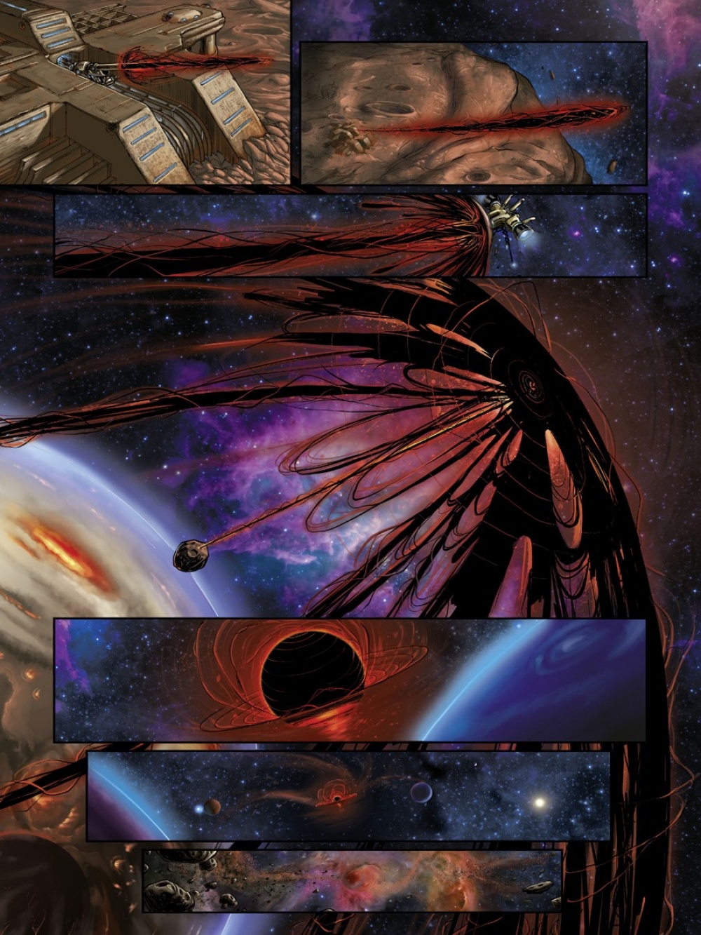 Mit 42 präsentiert Splitter ein Fantasy-Sci-Fi-Spektakel der Extraklasse, angesiedelt in einem fantastischen und düsteren Universum voller Raumschiffe, Drachen und fremder Wesen.