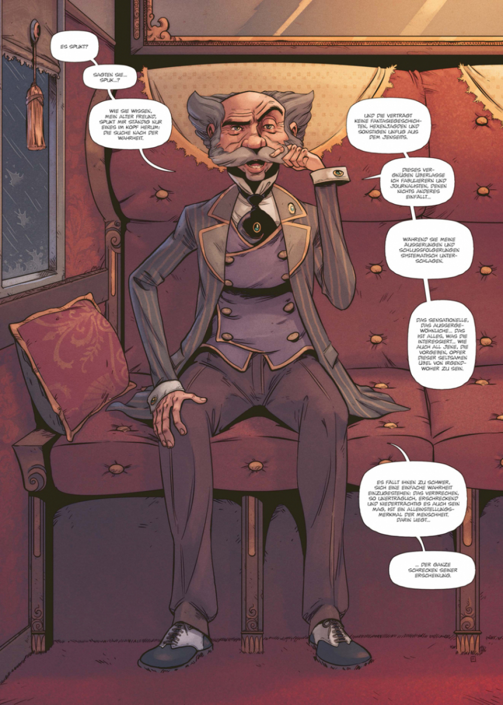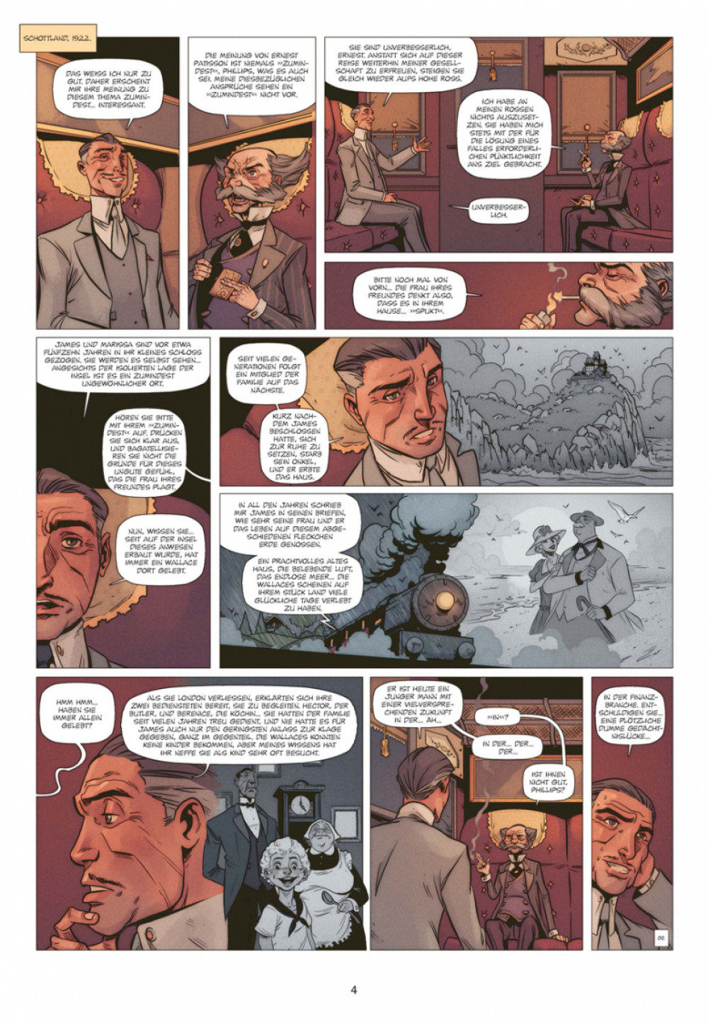 Großbritannien, 1922. Ernest Patisson, der berühmte Schweizer Globetrotter, wurde für ein Wochenende auf eine entlegene schottische Insel eingeladen. Captain Phillips wüsste zu gern, was der befreundete Detektiv über das Leiden denkt, von dem die Herrin des dortigen Anwesens befallen zu sein scheint. Ist sie tatsächlich besessen von einem boshaften Geist, der angeblich im Familiensitz sein Unwesen treibt? Patisson, der größte (und eitelste) Rationalist der Schweiz, brennt förmlich darauf, dem Mysterium mit Logik auf den Grund zu gehen. Aber kaum ist er auf der isolierten Insel eingetroffen, beginnen sich die Ereignisse zu überschlagen, und auch der kühle Vernunftmensch Patisson läuft bald Gefahr, den Verstand zu verlieren...