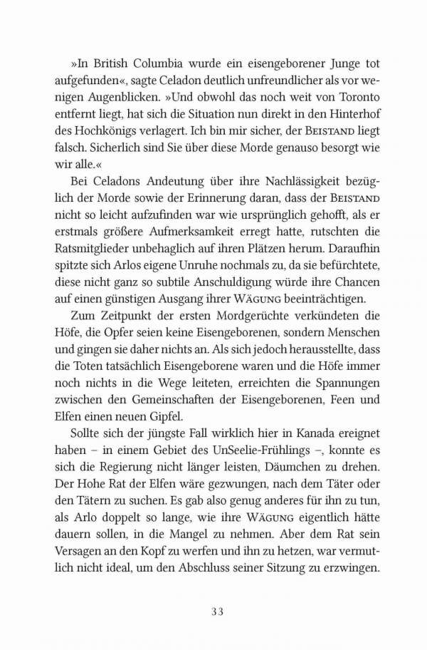 Seit Jahrhunderten leben die Acht Höfe der Feen mitten unter uns, verborgen durch Magie und an das Gesetz gebunden, den Menschen nicht zu schaden. Lange hat dieses Arrangement für Frieden zwischen den Höfen gesorgt – bis eine Reihe grausamer Ritualmorde Toronto erschüttern und drohen, die Feen der Menschenwelt gegenüber zu enttarnen.