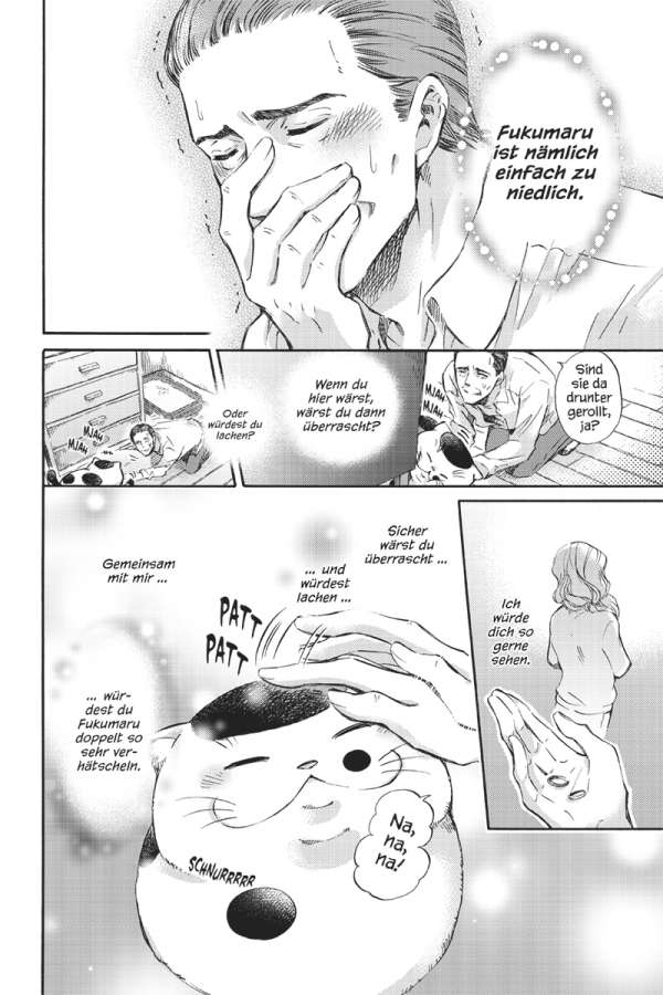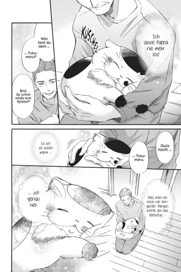 Seit Fukumaru bei Herrn Kanda eingezogen ist, hat sich vieles verändert. Längst ist er nicht mehr der einsame, ungewollte Kater, der in der Zoohandlung von allen übersehen wurde. Bei Herrn Kanda steckt jeder Tag voller Überraschungen – auch wenn Fukumaru oft ein richtiger Tollpatsch ist! Doch langsam begreift der kleine Kater, dass sein Besitzer ebenso mit der Einsamkeit zu kämpfen hatte wie er. Doch die Zeit, die für Herrn Kanda lange stillgestanden hat, setzt sich langsam wieder in Bewegung …