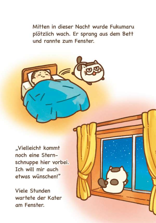 Das zauberhafte Bilderbuch aus der Feder von Umi Sakurai erzählt von einem kleinen mutigen Kater, einer magischen Sternschnuppennacht und davon, was Glück bedeutet.