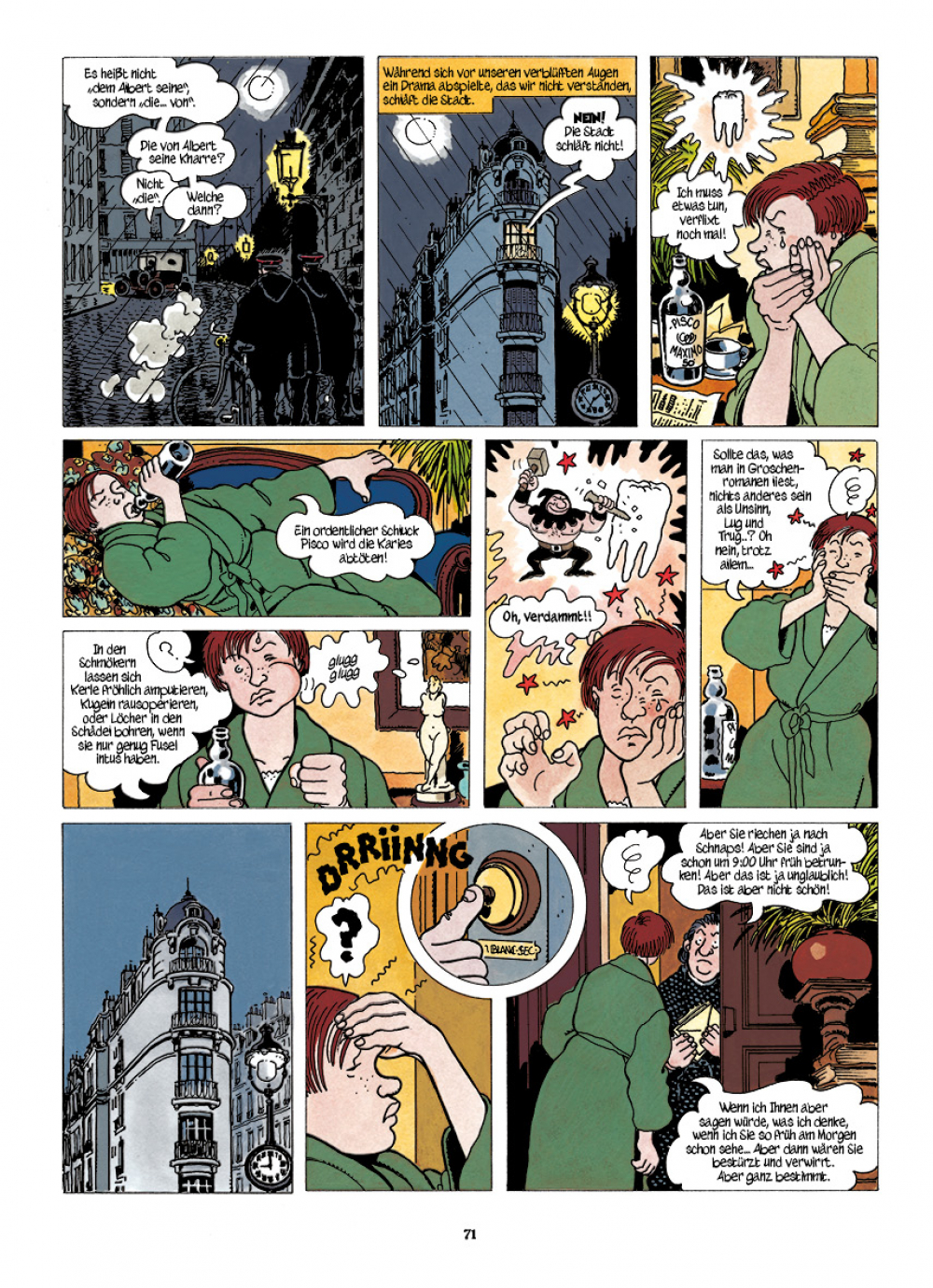 Monster und Tentakelwesen terrorisieren Paris und als wäre das noch nicht genug, verhunzt der traumatisierte Illustrator Honoré Fiasco mit deren Abbildungen auch noch die Titelseiten von Adeles Romanen. Aber Adele hat andere Sorgen, denn es verfolgt sie eine Brandsätze werfende Frau im schwarzen Body, die Bande vom „Zahnarzt“ und nicht zuletzt Kommissar Laumanne, Spitzname „Folterknecht“.
