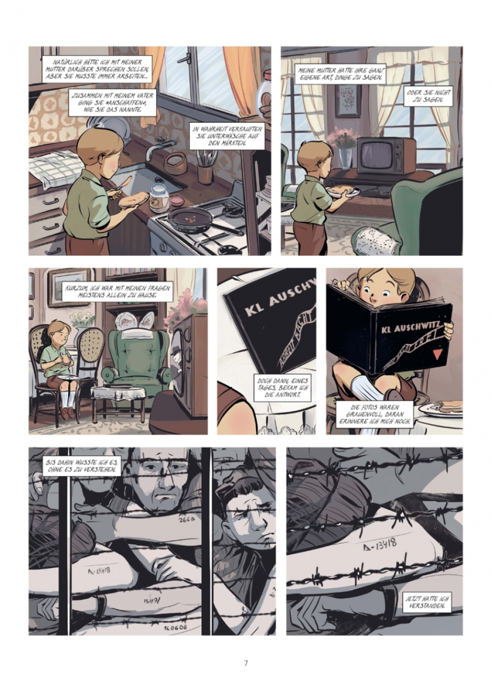 2020 begibt sich Ginette ein letztes Mal auf eine Gruppenreisen nach Polen, bevor das Alter es ihr verbietet. Sie erlaubt dem Journalisten Victor Matet und dem Comic-Szenaristen Jean-David Morvan, sie zu begleiten und in Form dieser Graphic Novel zu porträtieren. »Adieu Birkenau« ist sowohl die Biographie einer Überlebenden als auch Ginette Kolinkas persönliche Bilanz über ihr Leben mit dem Holocaust und ihr endgültiger Abschied vom »größten Friedhof der Welt«.