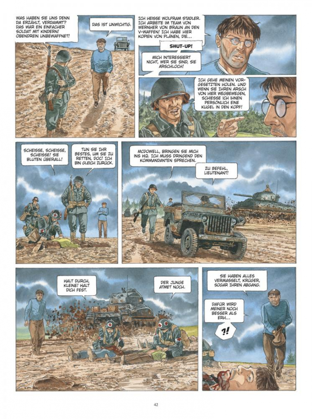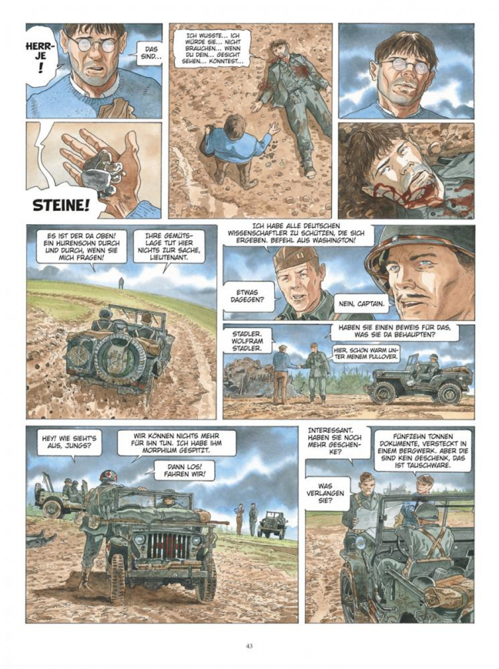 Mitte März 1945 versuchen verschiedene Menschen nach Süddeutschland und Österreich zu fliehen. Einige haben einen Goldschatz dabei, der ihnen eine Zukunft in Südamerika erleichtern soll. Andere wollen sich den Amerikanern ergeben. Wieder andere wollen einfach nur überleben. Philippe Jarbinet erzählt gekonnt eine spannende, an historischen Fakten orientierte Geschichte, die er perfekt in Comicform umgesetzt hat. Band 8 ist der zweite und letzte Teil dieser packenden Geschichte in zwei Bänden.