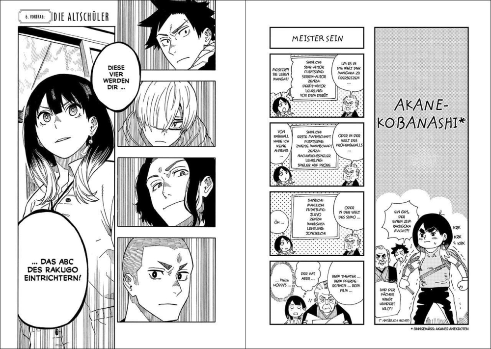 Akane-banashi ist ein ambitionierter Slice-of-Life-Manga über die Welt der klassischen japanischen Rakugo-Erzählkunst. Rakugo bedeutet „gefallene Worte“ und meint das mündliche Geschichtenerzählen in traditioneller japanischer Form.