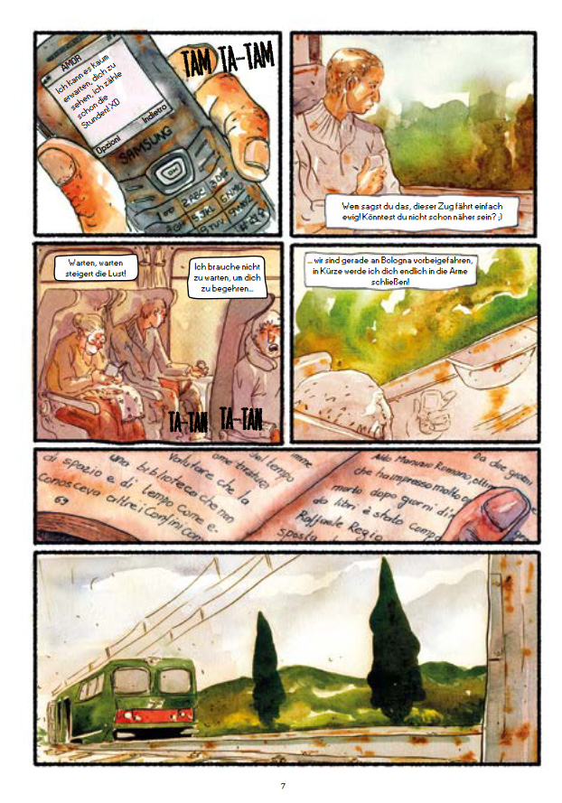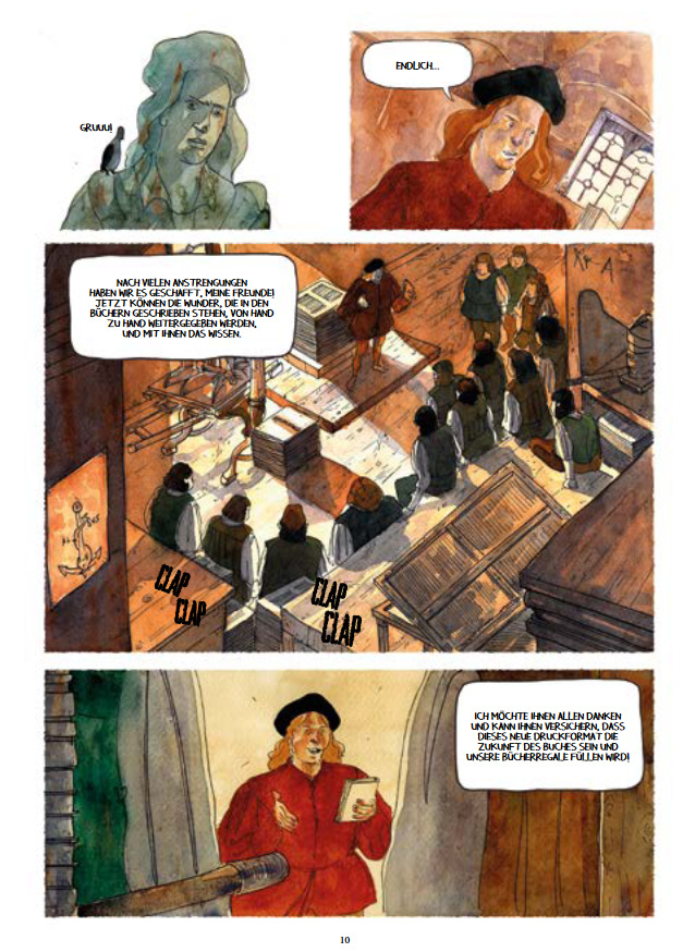 Im Comic verschränkt Andrea Aprile die zeitliche Ebene der biografischen Ereignisse des Verlegers und Humanisten mit der zweier junger Menschen von heute, in einem ständigen Spiel von Querverweisen und Überblendungen. Die zarten Aquarelle von Gaspard Njock beflügeln unsere Vorstellungskraft und so zeigt Aldo Manuzio, wie die Liebe zu Büchern ein unauflösliches Band zwischen Menschen verschiedener Generationen schaffen kann. Mit einem Dossier des Kunsthistorikers Antonio Polselli.