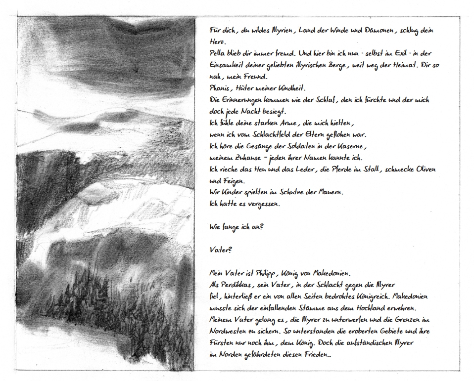 Mythische Geschichten ranken sich um Alexanders Geburt. Schon seine Eltern begründeten ihre Königswürde damit, dass ihre Familien von göttlicherAbstammung seien.Auch Alexander wächst mit dem Glauben auf, als Sohn eines Gottes auf eine besondereAufgabe vorbereitet zu werden.