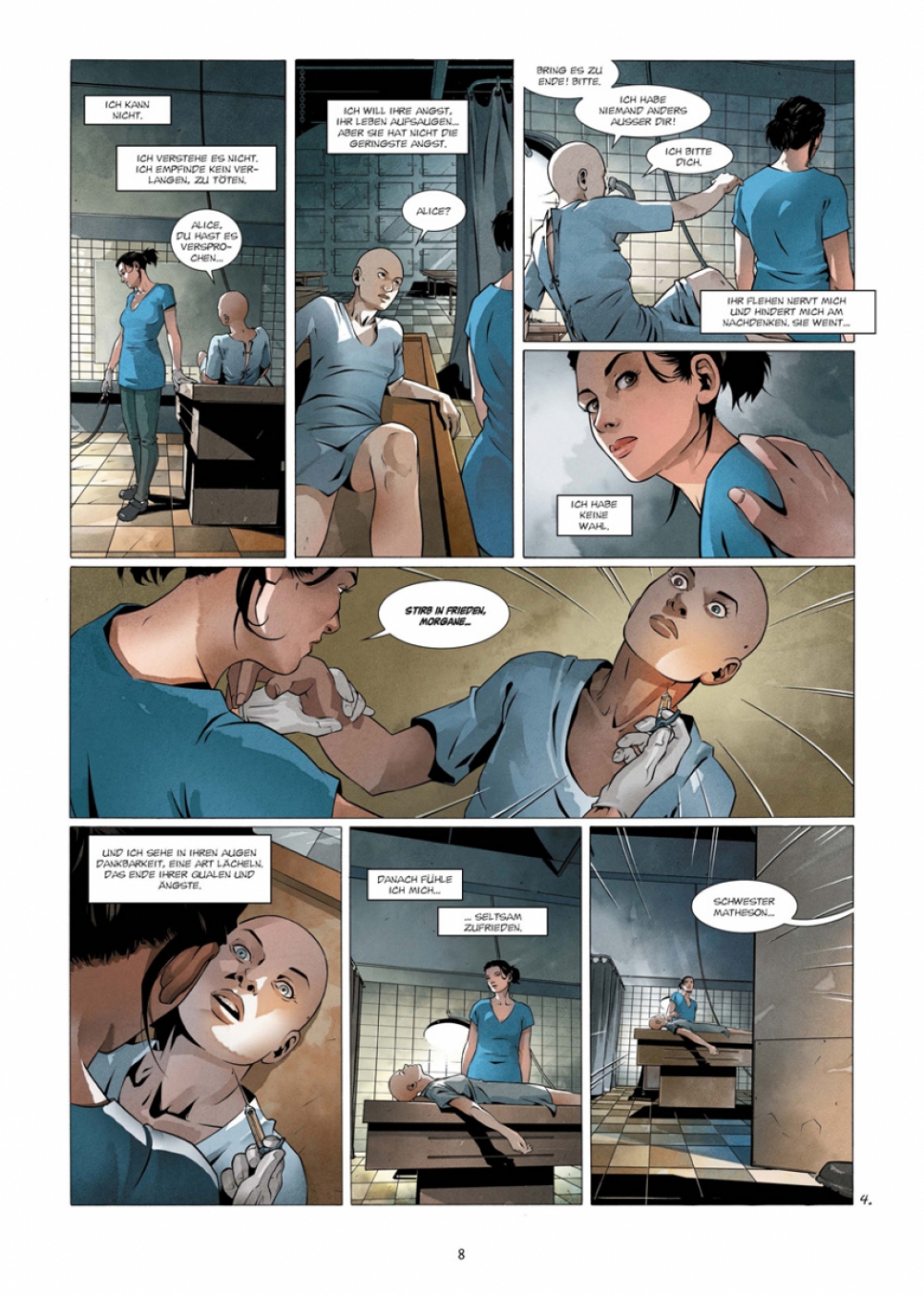 Jean-Luc Istin (u. a. »Das fünfte Evangelium«, »Die Nacht der lebenden Toten«) erzählt, angelegt auf sechs Bände, eine fesselnde, verstörende Geschichte, die einen noch lange verfolgt. Zumal Philippe Vandaëles gekonnte Illustrationen für eine Atmosphäre aus kalter Erbarmungslosigkeit und permanenter Anspannung sorgen, die die Leserinnen und Leser sofort in ihren Bann schlagen. Zum Glück wird man nicht lang auf die Fortsetzung warten müssen: Istin und sein Team wechselnder Zeichner sorgen dafür, dass die Spannung nicht abreißt!