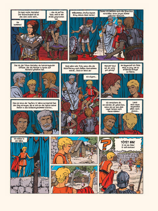 Alix wird mit einer heiklen Mission beauftragt: Er soll eine Gruppe gallischer Söldner nach dem Sieg über die Parther zurück in ihr Heimatland begleiten. Und ihm zur Seite steht ausgerechnet Iorus der Tapfere, der einen heimlichen Groll gegen Alix hegt...