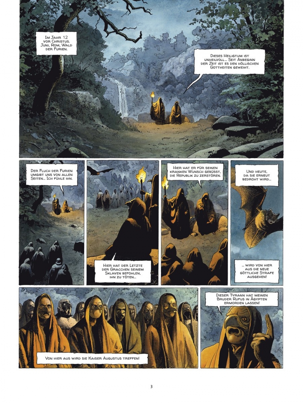 Von diesen Vorfällen beunruhigt, beauftragt Augustus seinen alten Freund, den Senator Alix Gracchus, die Fälle diskret zu untersuchen. Eine Ermittlung, die Alix, unterstützt von seinen Söhnen Titus und Kephren (der leibliche Sohn Enaks, den Alix nach dessen Tod adoptierte) auf die Spur des rätselhaften Herrn der Vögel führt. Doch die Gefahr ist noch lange nicht gebannt, sie bedroht nun sogar den Kaiser in Person. Und Alix wird schließlich herausfinden, das sich das gefährlichste Raubtier im Herzen von Rom versteckt, dort, wo es niemand vermutet hätte...