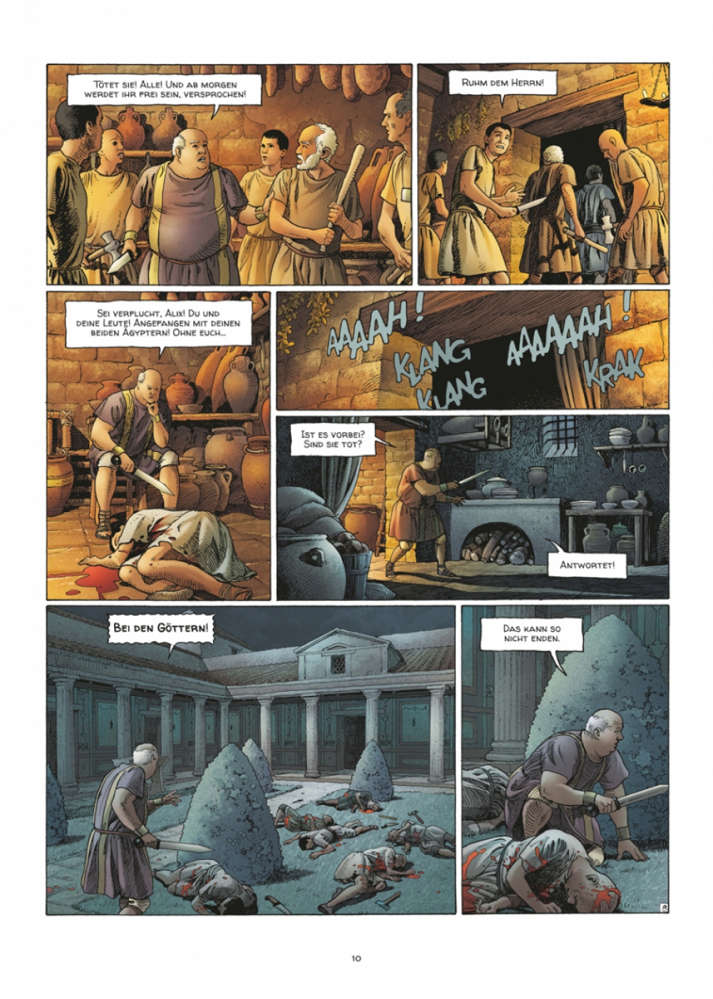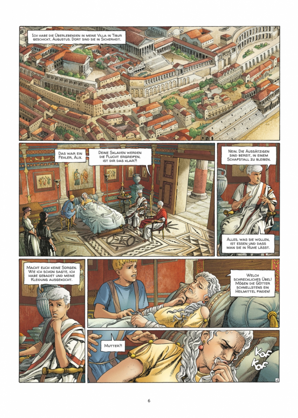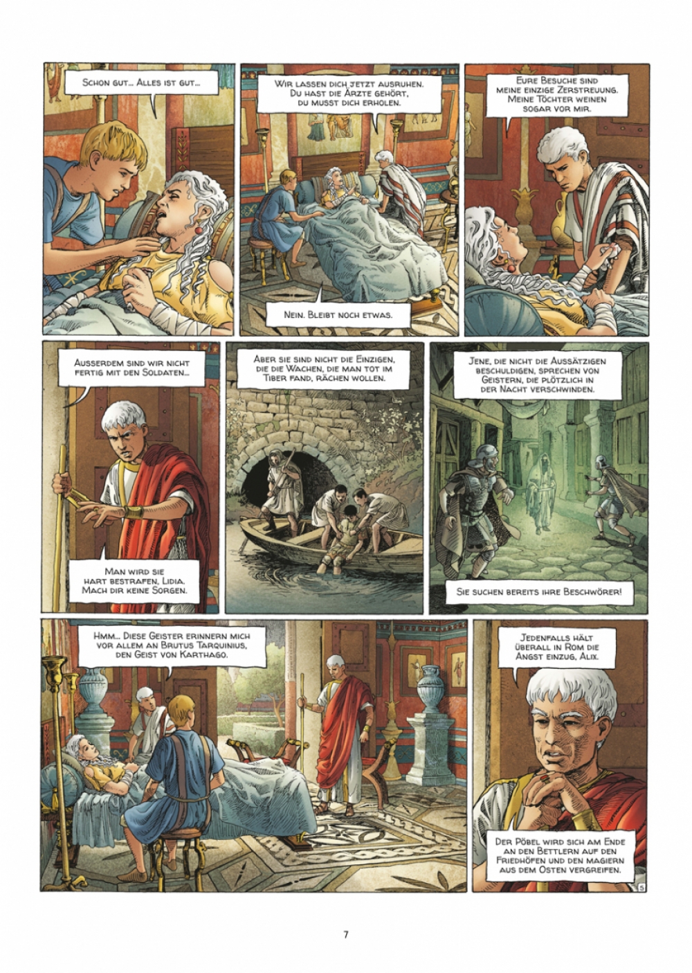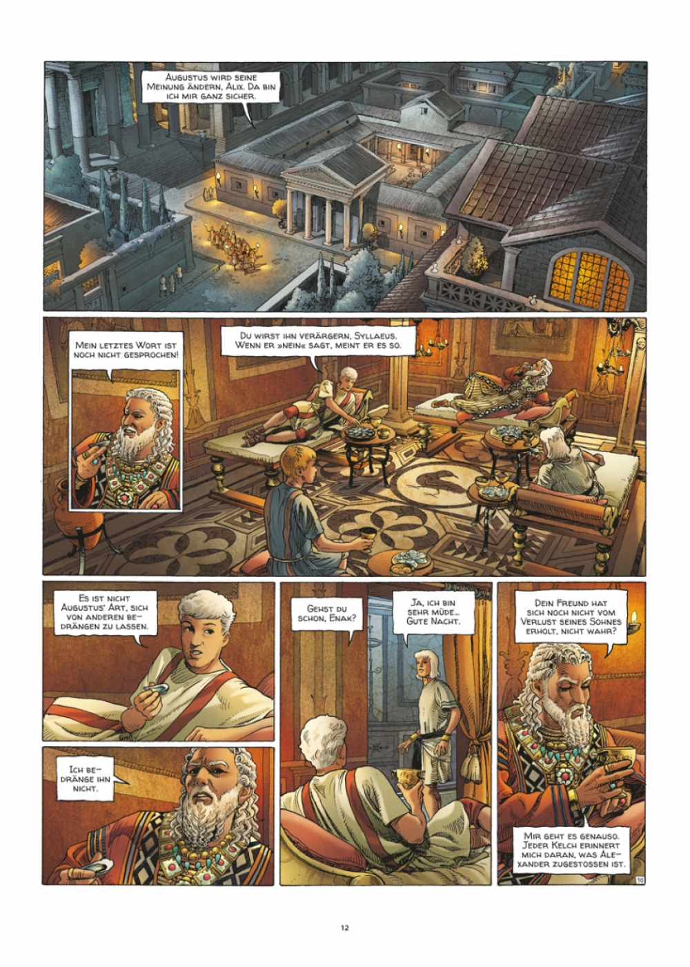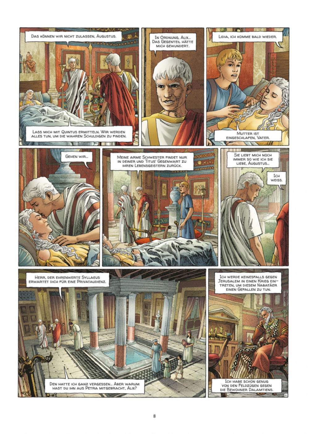 12 v. Chr. – Marcus Aemilius Lepidus, Pontifex von Rom, und Agrippa, der vom mächtigen Kaiser Augustus zu seinem Nachfolger ernannte Politiker, werden auf mysteriöse Weise von Adlern getötet, die ihre Eingeweide zerreißen. Von diesen Vorfällen beunruhigt, beauftragt Augustus seinen alten Freund, den Senator Alix Gracchus, die Fälle diskret zu untersuchen. Eine Ermittlung, die Alix, unterstützt von seinen Söhnen Titus und Kephren (der leibliche Sohn Enaks, den Alix nach dessen Tod adoptierte) auf die Spur des rätselhaften Herrn der Vögel führt. Doch die Gefahr ist noch lange nicht gebannt, sie bedroht nun sogar den Kaiser in Person. Und Alix wird schließlich herausfinden, das sich das gefährlichste Raubtier im Herzen von Rom versteckt, dort, wo es niemand vermutet hätte... Ein neues Kapitel öffnet sich für den von Jacques Martin geschaffenen berühmten Römerjungen Alix. Im reifen Alter zum Senator von Rom aufgestiegen, erlebt Alix neue und spannende Abenteuer, die von Valérie Mangin erdacht und von Thierry Démarez prachtvoll in Szene gesetzt wurden. Ein Ereignis!