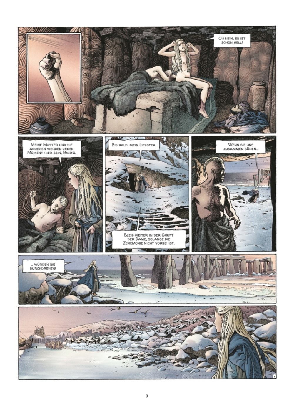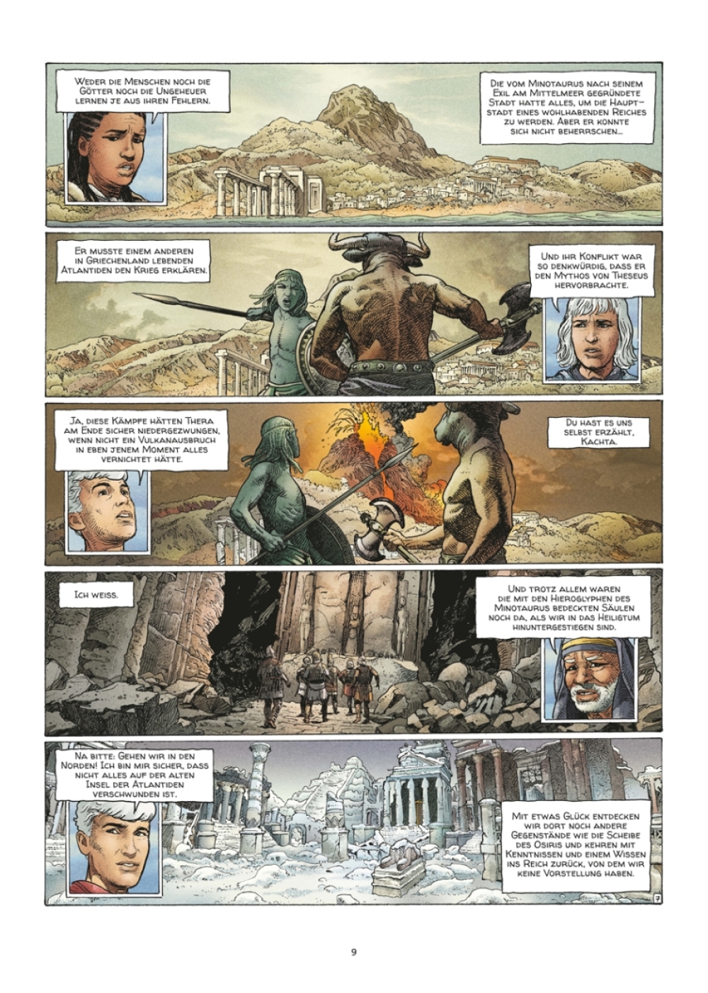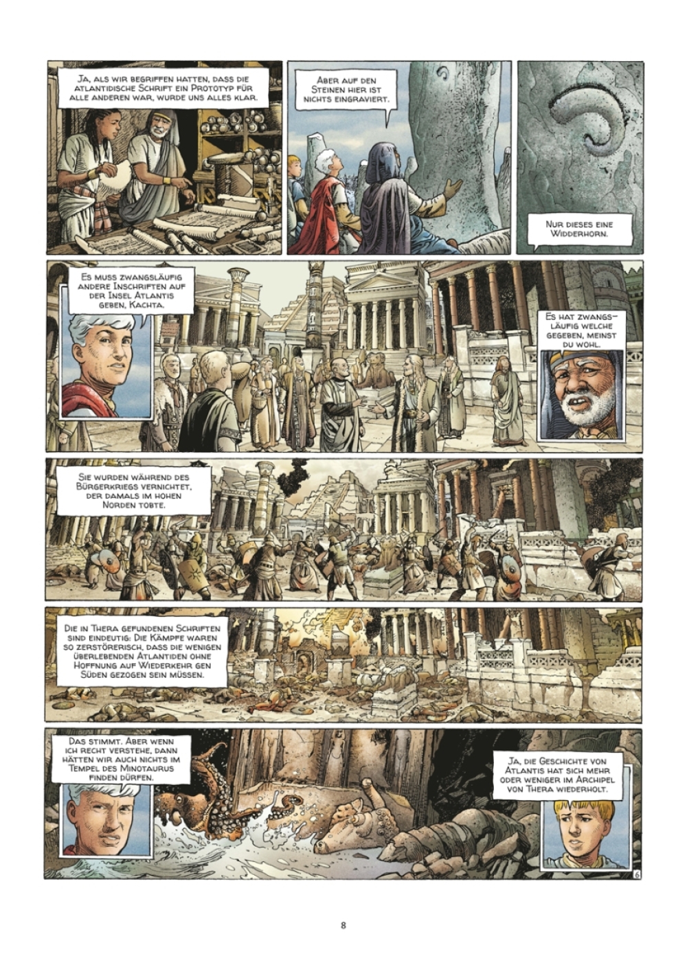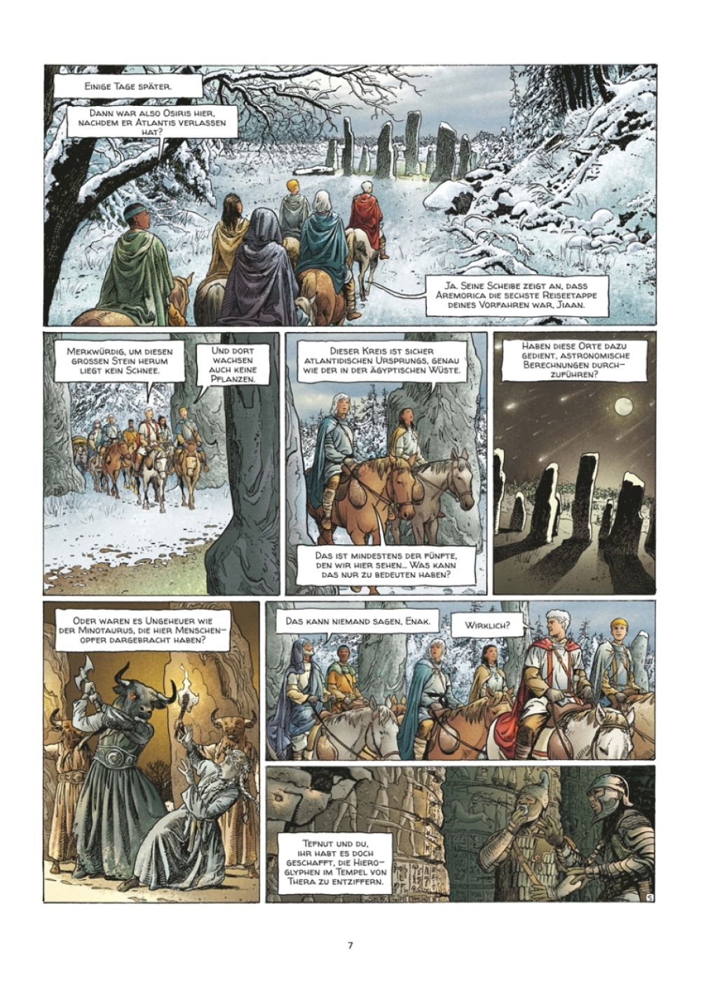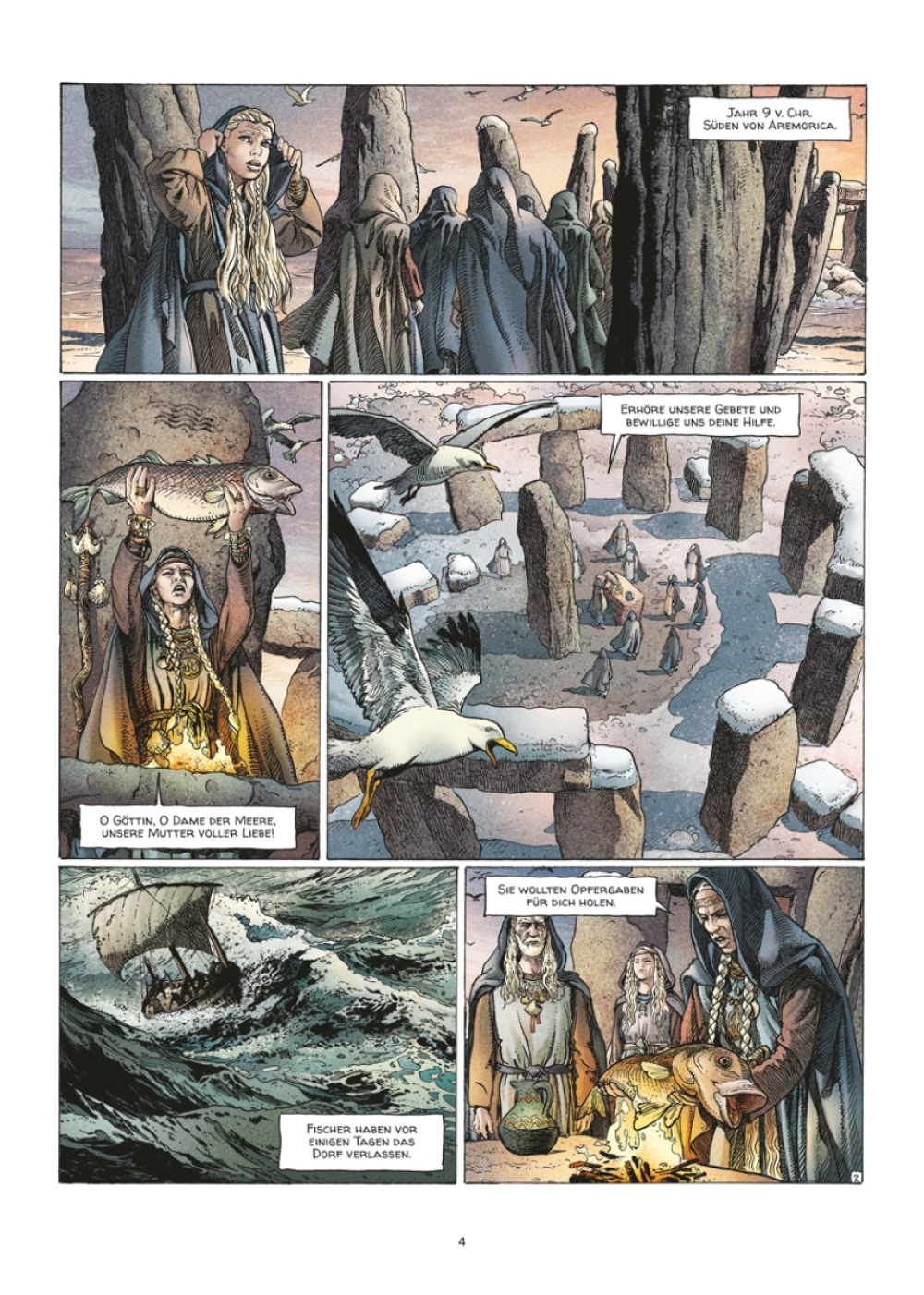 Entschlossen, das geheimnisvolle Atlantis im hohen Norden zu erreichen, reisen Alix und seine Gefährten in ein Dorf in Armorica. Dort wollen sie ein Schiff bauen lassen, das den extremen Bedingungen standhalten kann, die ihnen auf ihrer Reise bevorstehen. Im Dorf schwelt jedoch ein Konflikt, der durch die Ankunft der Fremden verschärft wird: Eine religiöse Gruppierung will jede Art von Fernreise verbieten und sinnt darauf, alle Befürworter der Erkundung der Außenwelt zu beseitigen... und Alix gleich mit.