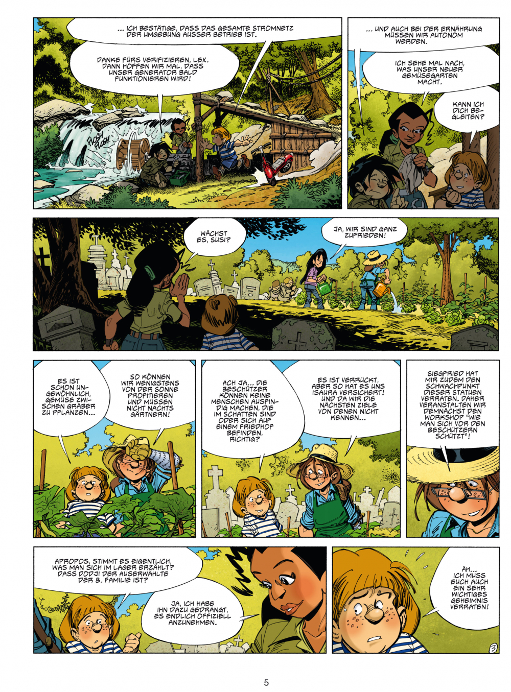 Nachdem Dodji, Leila, Yvan, Camilla und Terry der auferweckten Beschützer-Statue entkommen konnten und sie in einer Bibliothek interessante Informationen über ihre Vergangenheit erfahren haben, sind sie wieder ins Basislager zu den anderen Kindern gestoßen.