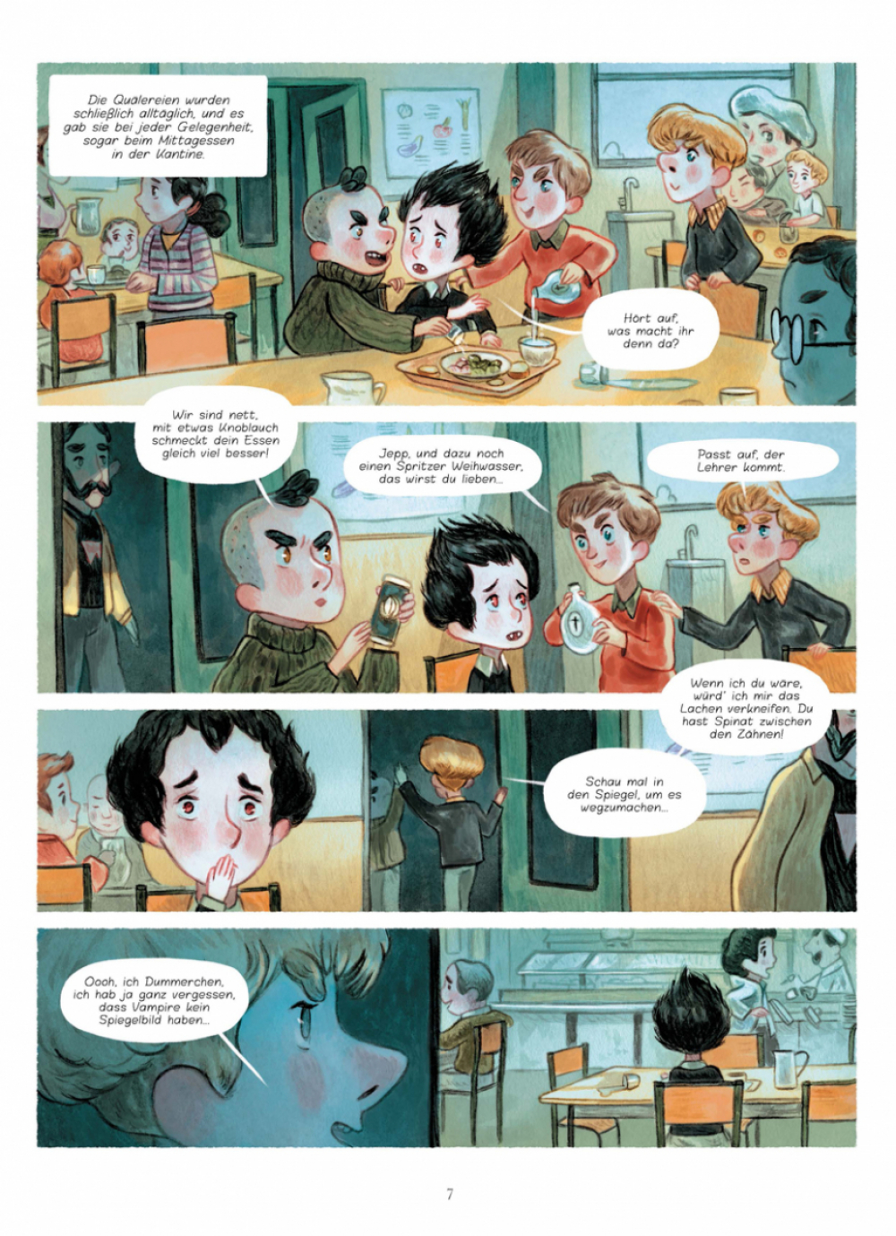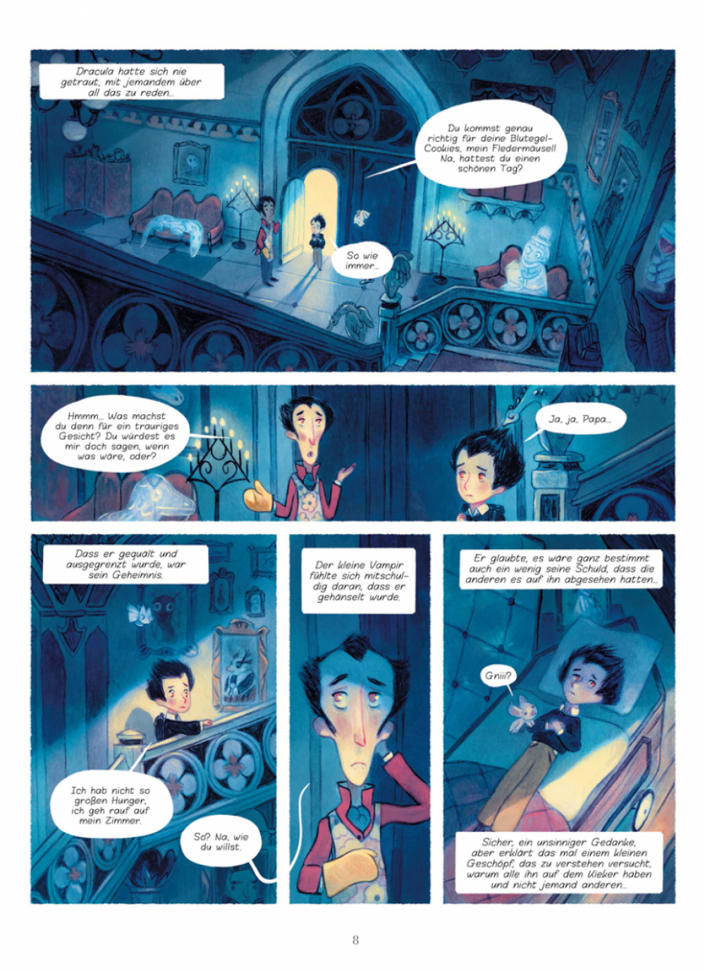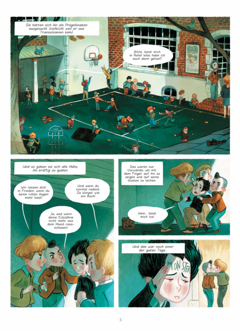 Für viele Eltern und viele Lehrer sind Mobbing und Ausgrenzung unter Kindern sensible und oft schwer zugängliche Themen. Dieses Comic-Album für kleine und große Leser führt auf clevere wie einfühlsame Weise vom Problem zur Lösung: ohne erhobenen Zeigefinger und ohne Vorwürfe zu erheben. Denn auch wenn man Dracula heißt, sind Aufmerksamkeit, Offenheit und Selbstvertrauen stets mächtiger als Angst und Wut.