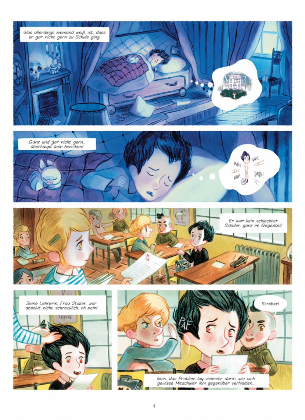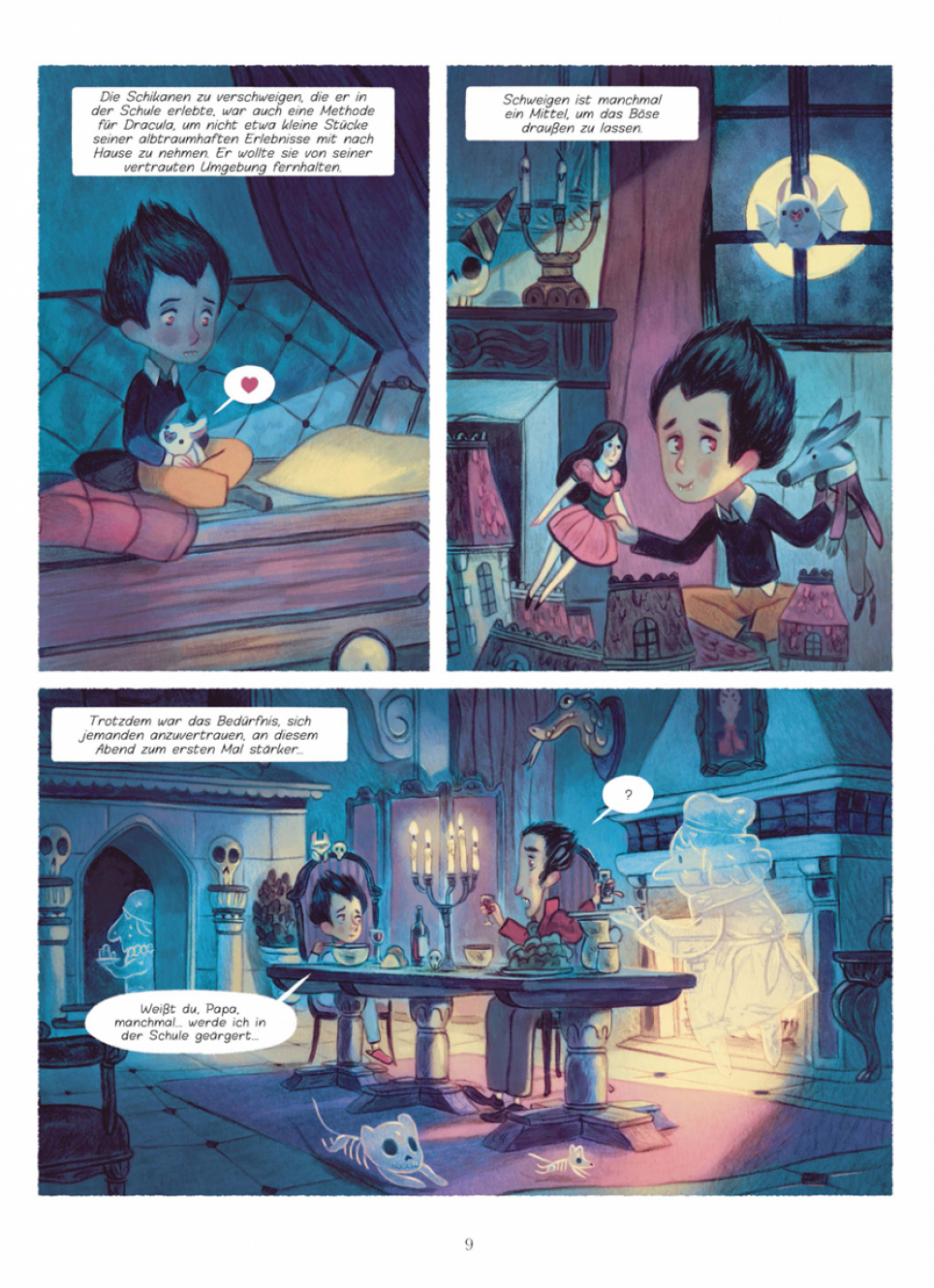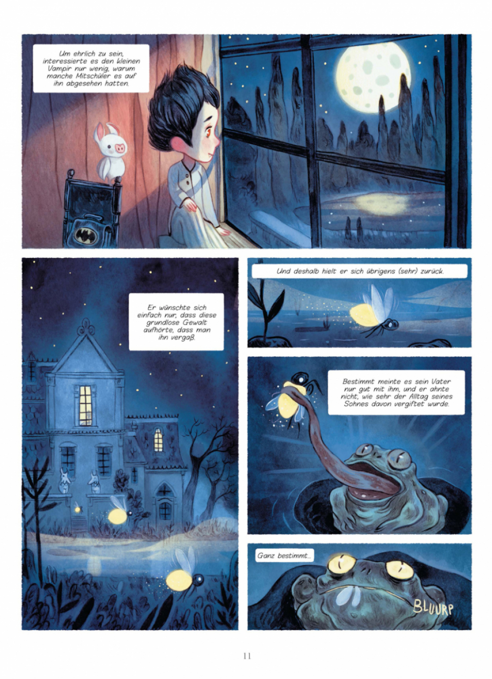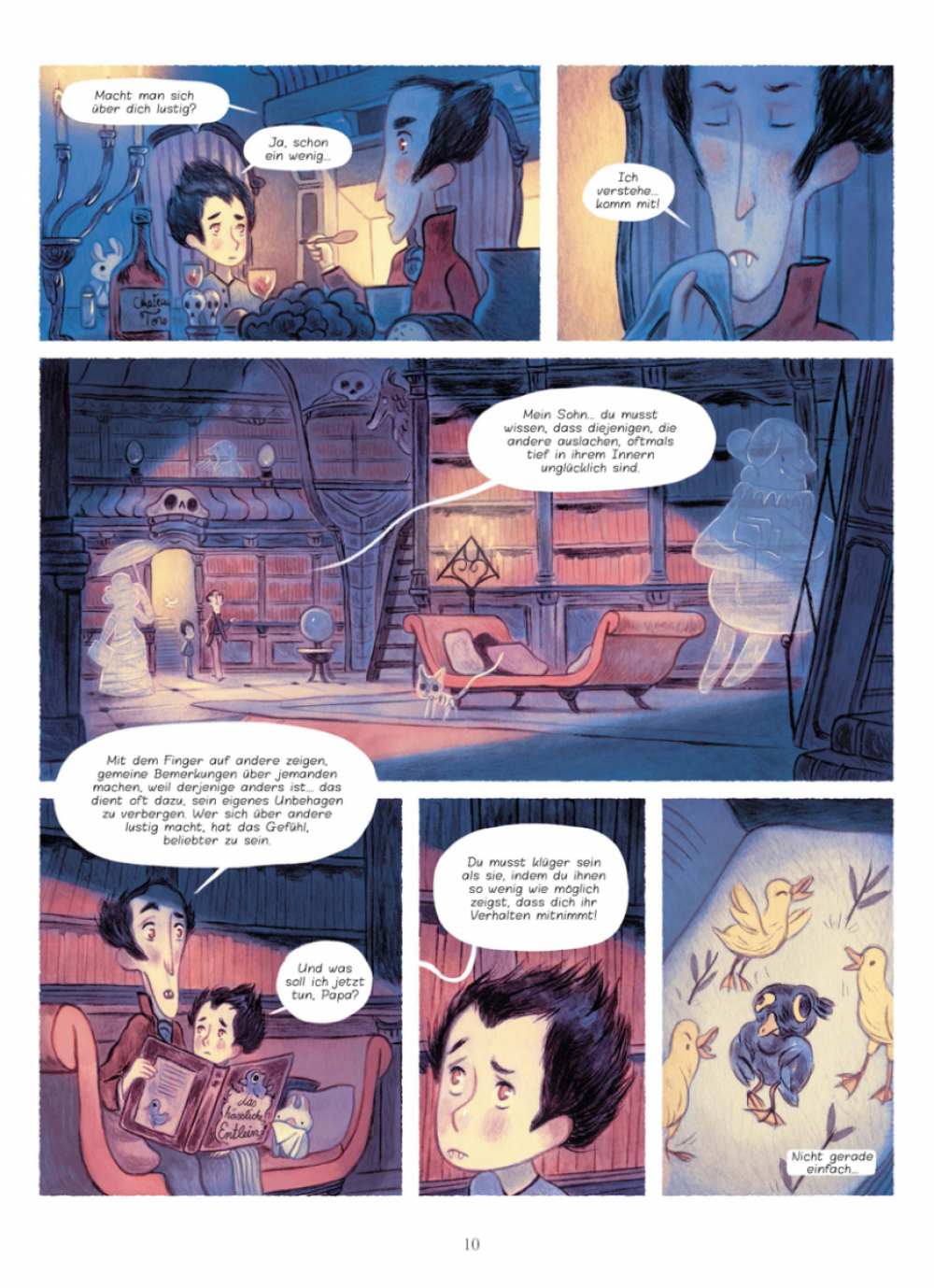 Für viele Eltern und viele Lehrer sind Mobbing und Ausgrenzung unter Kindern sensible und oft schwer zugängliche Themen. Dieses Comic-Album für kleine und große Leser führt auf clevere wie einfühlsame Weise vom Problem zur Lösung: ohne erhobenen Zeigefinger und ohne Vorwürfe zu erheben. Denn auch wenn man Dracula heißt, sind Aufmerksamkeit, Offenheit und Selbstvertrauen stets mächtiger als Angst und Wut.