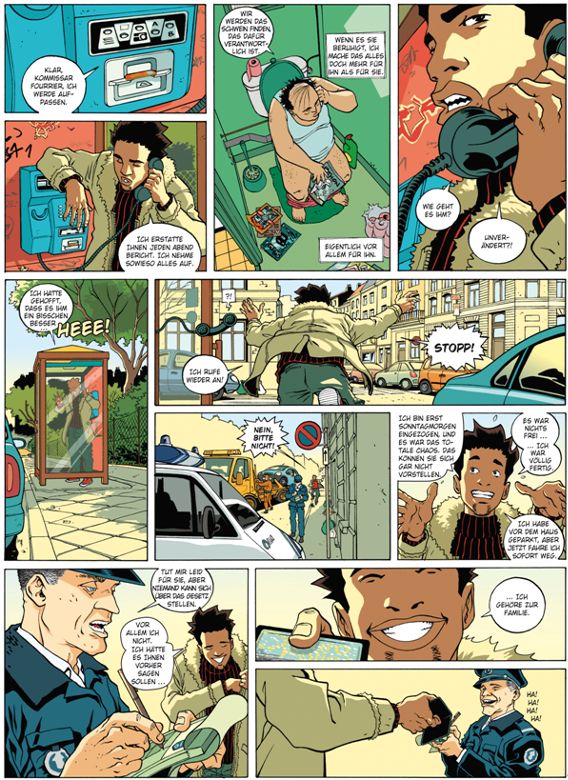 Was mit einer einfachen Ticketkontrolle im Zug von Amsterdam nach Marseille beginnt wird zu einem ausgewachsenen Fall für die Eurocops in Brüssel weil ein Mann droht, eine biochemische Bombe hochgehen zu lassen. Albertus M´Natogo, jüngstes Mitglied der Eurocops, muss in seinem ersten richtigen Fall zeigen, was in ihm steckt. Jean David Morvan und Sylvain Savola haben mit al´togo einen reinrassigen Krimi, der bei aller Spannung Raum für Gefühle lässt. Ganz in der Tradition der Ligne Claire und ihres frühen Meisterwerkes Nomad verstehen es die beiden, den Leser in ihren Bann zu ziehen.