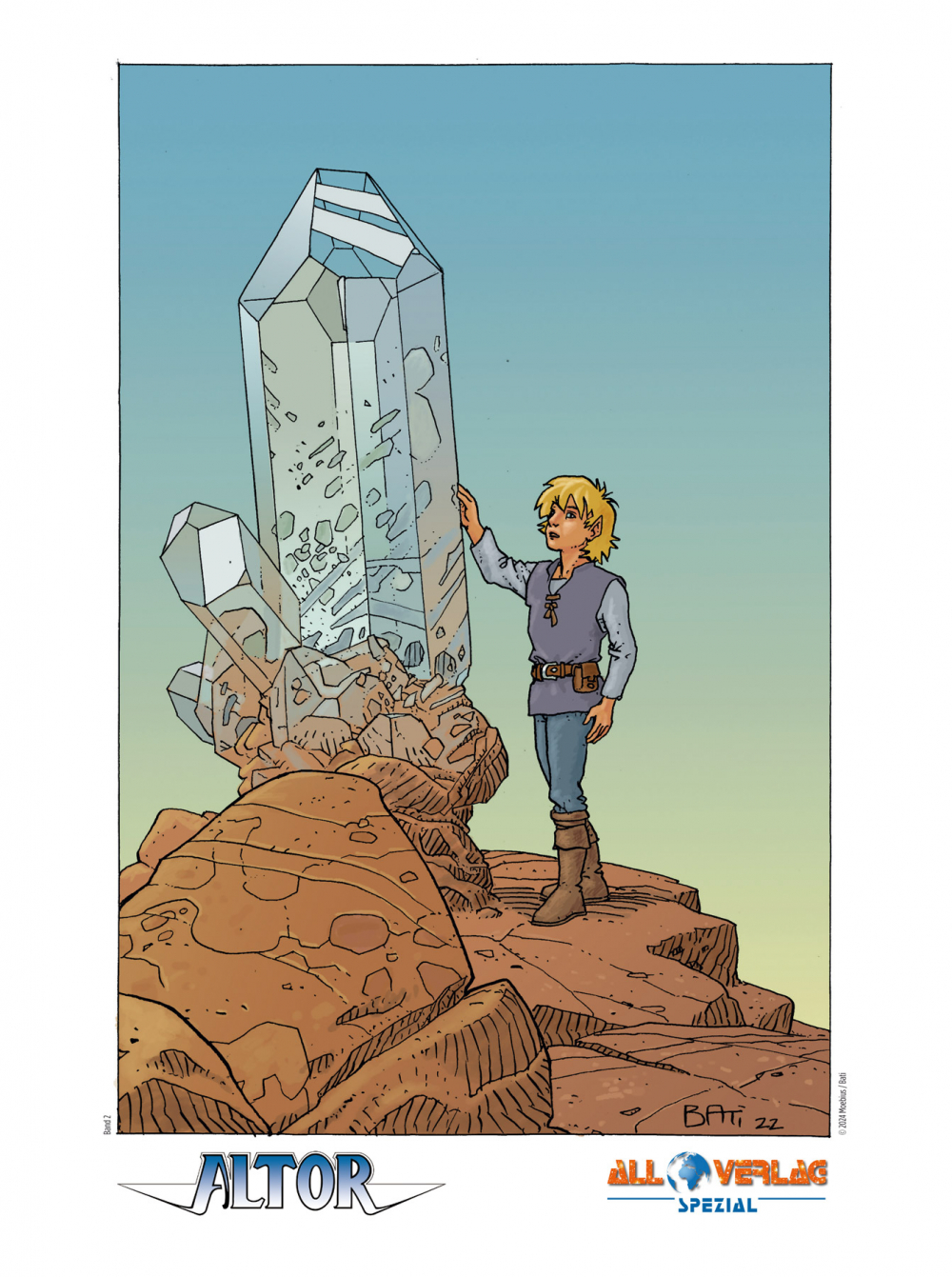 Das Aufeinandertreffen des Comiczeichners Marc Bati mit Jean Giraud alias Mœbius im Jahr 1982 markiert einen Meilenstein im Bereich der Fantasy-Comics. Nach ersten gemeinsamen Arbeiten setzte Bati in den Jahren 1986–1990 die Trilogie Der große Kristall nach Szenarien von Giraud grafisch um. Ab 1992 folgten dann vier weitere Alben unter dem endgültigen Reihentitel Altor, die in diesem zweiten und letzten Band der Gesamtausgabe vereint sind.