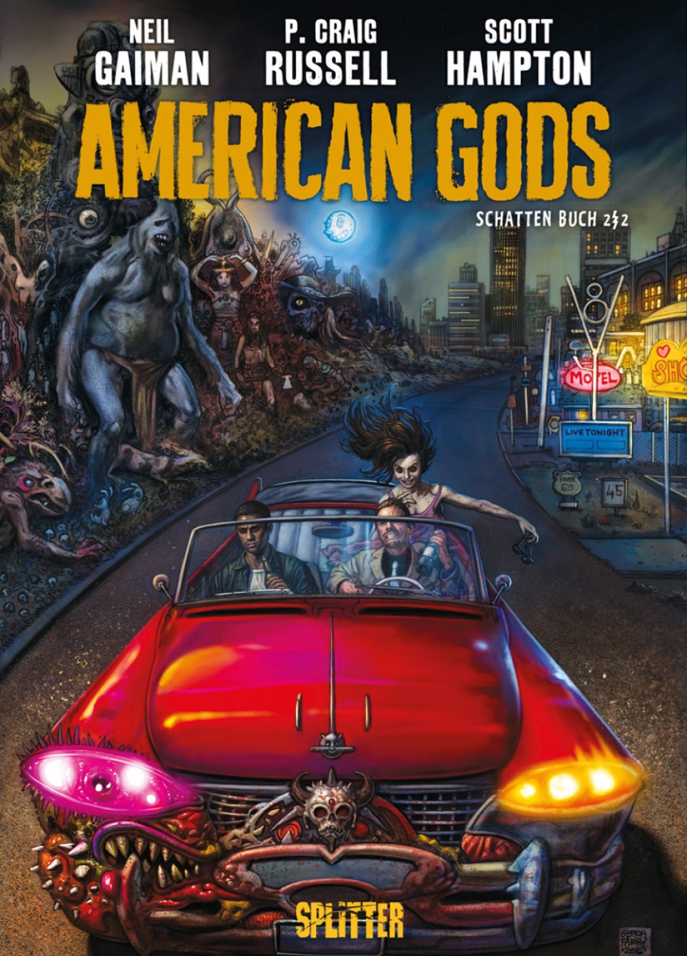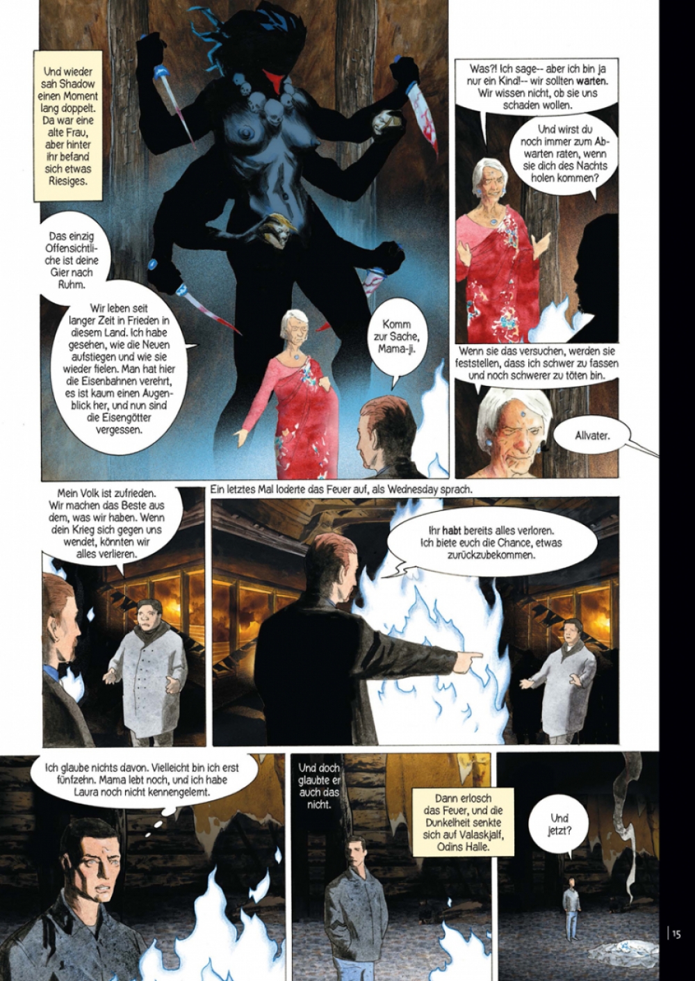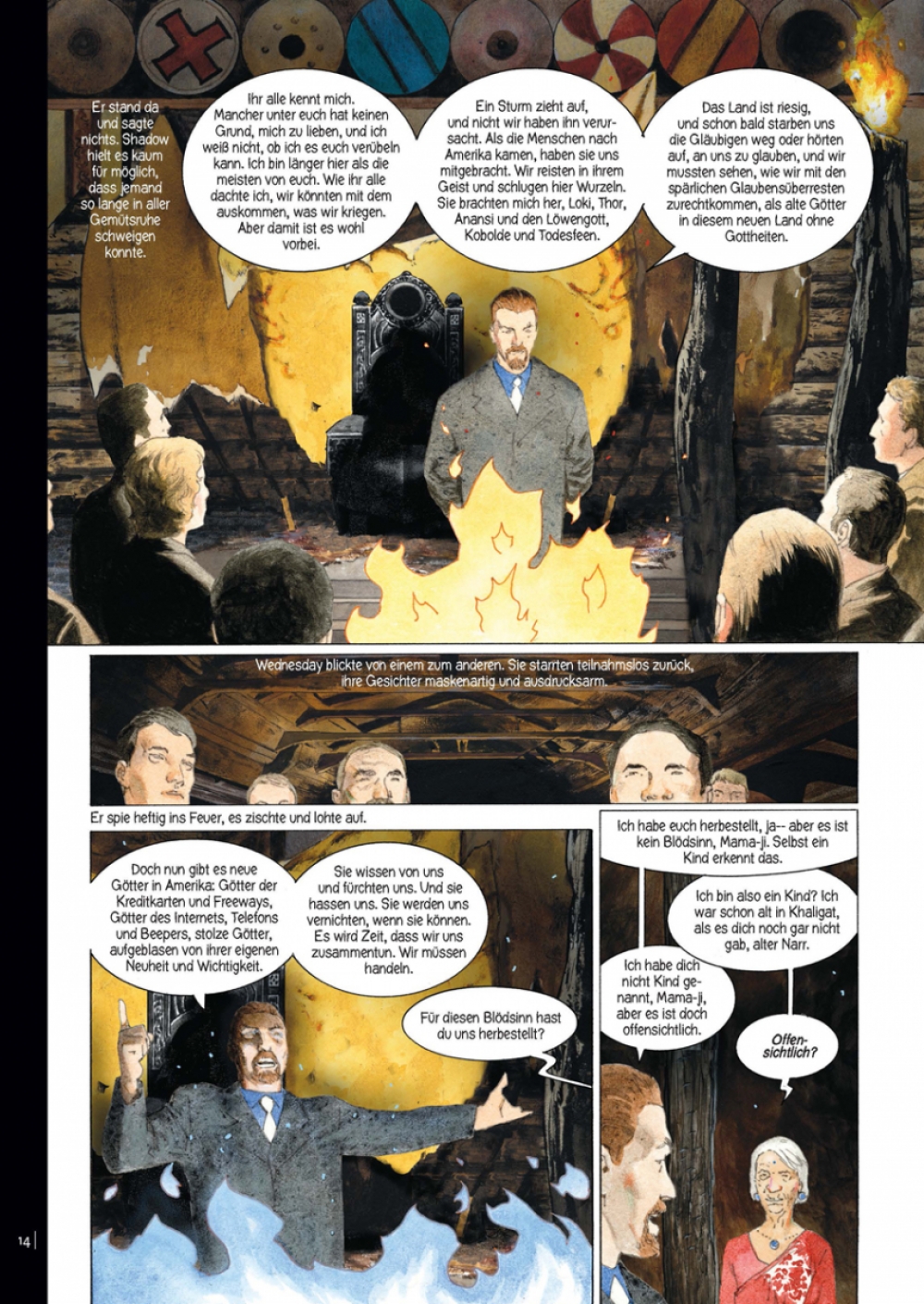 Shadow hat es bisher nicht leicht gehabt im Leben. Kaum hat er seine unverdiente Haftstrafe abgesessen und will gerade zu seiner geliebten Frau Laura zurückkehren, erfährt er, dass sie einen tödlichen Unfall hatte – und das wird nicht der letzte Schicksalsschlag für Shadow gewesen sein. Darum hält ihn nichts davon ab, auf das Jobangebot des jovialen Mr. Wednesday einzugehen und dessen Leibwächter zu werden. Über Mr. Wednesdays Motive wird Shadow im Dunkeln gelassen, und die Personen, die er auf seinen Reisen quer durch die USA besucht, sind ebenso undurchschaubar. Der trink- und rauffreudige Mad Sweeney, das Bestatterduo Mr. Ibis und Mr. Jaquel und der grimmige Tschernobog sind noch die angenehmeren Bekanntschaften – andere Begegnungen wie die mit einem hochnäsigen Typen, der sich selbst den Technischen Jungen nennt, verlaufen deutlich bedrohlicher. Zur gleichen Zeit häufen sich in Shadows Umfeld merkwürdige Ereignisse, und es dauert nicht lang, bis Shadow mittendrin ist in einem uralten Konflikt von wahrhaft göttlichem Ausmaß. »American Gods«, der Urban-Fantasy-Bestseller von Neil Gaiman (»Coraline«, »The Sandman «), feierte vor Kurzem seine Premiere als TV-Serie auf Amazon Prima – und jetzt ist er auch in Comicform erhältlich!