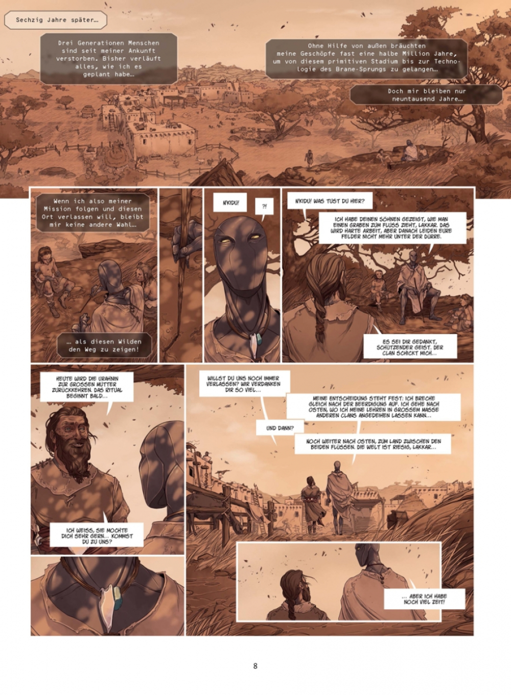 Als sein Schiff auf einem fremden, blauen Planeten abstürzt, wird dem Androiden, der die Havarie als Einziger überlebt, bald klar, dass ihm nur wenige Jahrtausende verbleiben, um einen Weg zu finden, in seine Heimat zurückzukehren. Danach werden seine Energiereserven erschöpft sein. Das Technologieniveau dieser Welt ist primitiv, aber seine Bewohner lernen schnell. Es liegt an ihm, sie zu führen...