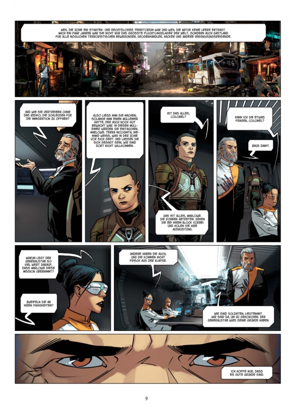 Mit dieser zweiteiligen SciFi-Adaption von Joseph Conrads Klassiker »Herz der Finsternis« wird das »Androiden«-Universum um eine düstere, bittere Zukunftsvision von dantesker Tragik erweitert: Captain Marlowe wird unvermittelt aus der psychiatrischen Klinik entlassen. Sie wird auf eine kritische Mission im weltgrößten Lager für Flüchtlinge, Drogenhändler, Hacker und Terroristen der Welt entsandt. Marlowe zögert keinen Moment, denn sie ist eine gute, pflichtbewusste Soldatin. Aber warum wurde ausgerechnet sie vom Generalstab dafür auserkoren?
