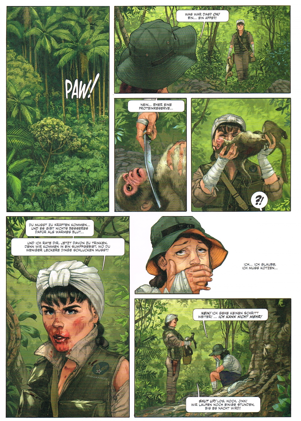 Mit Wut im Bauch müssen Rob und Philipp sich dazu entschließen, Angela und Jinx, deren Maschine im Dschungel abgestürzt ist, ihrem Schicksal zu überlassen. Auf sich allein gestellt, kämpfen die zwei Frauen um das nackte Überleben und müssen gegen die vielen Gefahren des Dschungels kämpfen: Blutegel, Insekten, Feuchtigkeit, Fieber, Hunger; vor allem aber müssen sie den Eingeborenen, die den Japanern freundlich gesinnt sind, entkommen und insbesondere den unerbittlichen japanischen Kempeitai, die sie gnadenlos jagen...