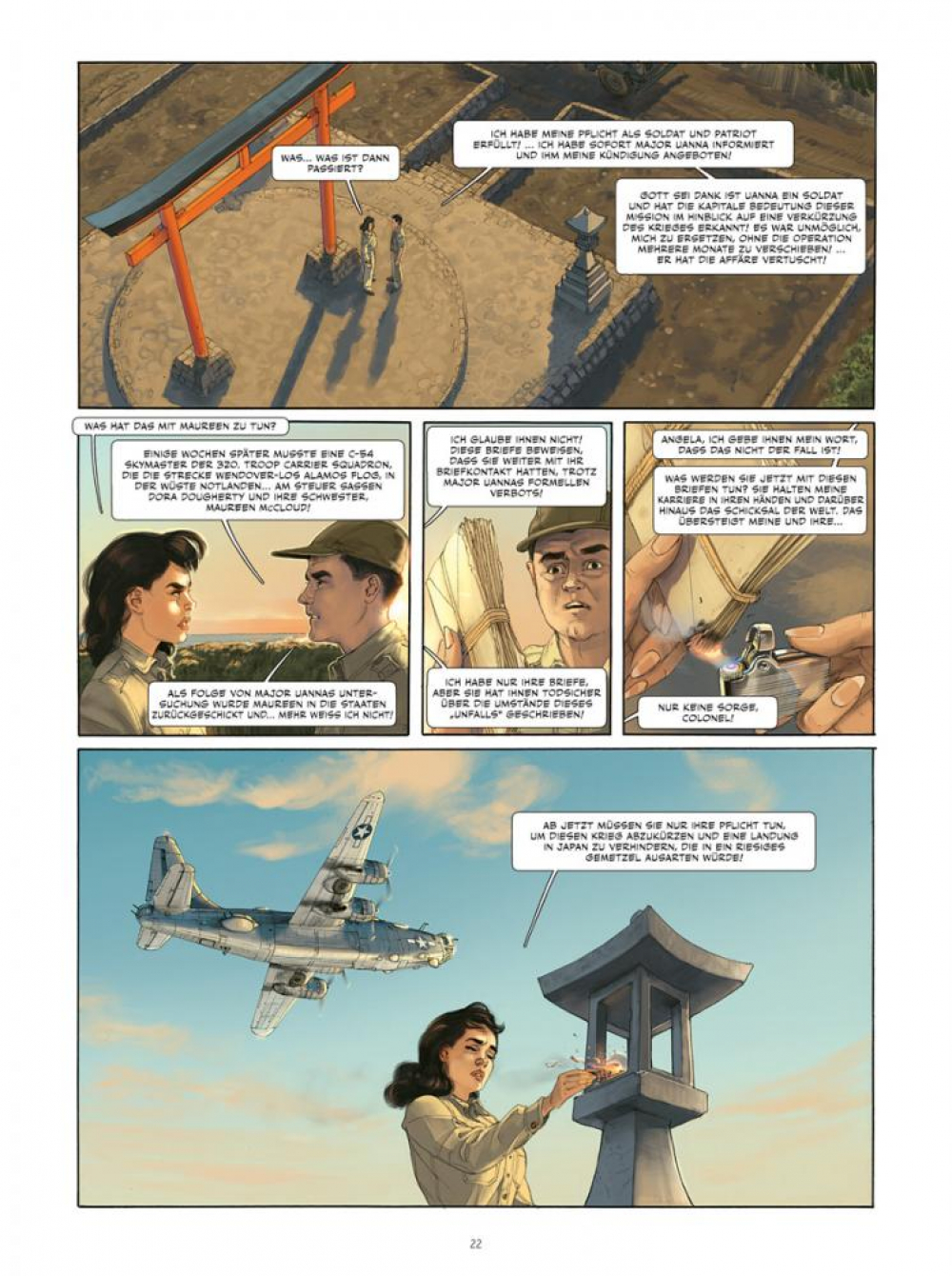 Auf Tinian ist Angela endlich kurz davor, die Wahrheit über den angeblichen Verrat ihrer Schwester Maureen zu erfahren, die zu ihrer Ermordung durch den OSS geführt hat. Angela trifft auf Dora, wie sie selbst eine Ex-WASP, die mit Maureen Transporte mit „sensibler“ Ladung geflogen hat, die mit der Operation Silverplate in Verbindung standen. Aber Major Unna und der Geheimdienst behindern Angelas Nachforschungen, nur Dora und Lieutenant-Colonel Tibbets, der Maureens Liebhaber war, könnten ihr weiterhelfen.