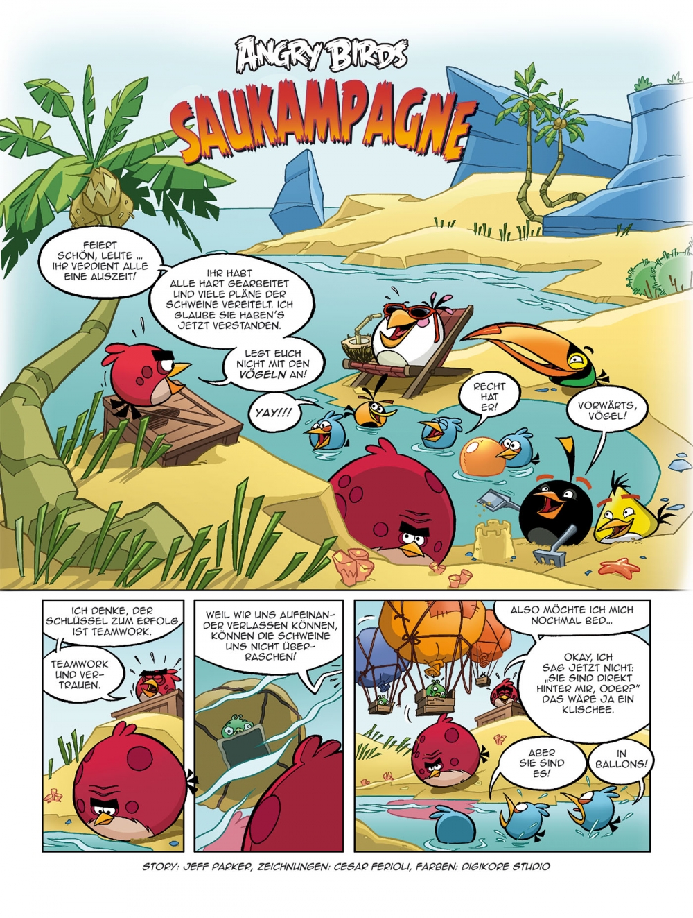 Die beliebten digitalen Kappeleien zwischen Vögeln und Schweinen jetzt in Comicform!