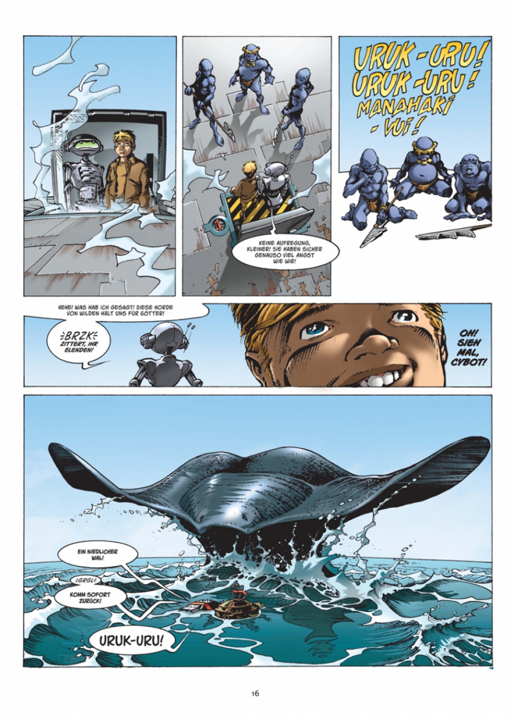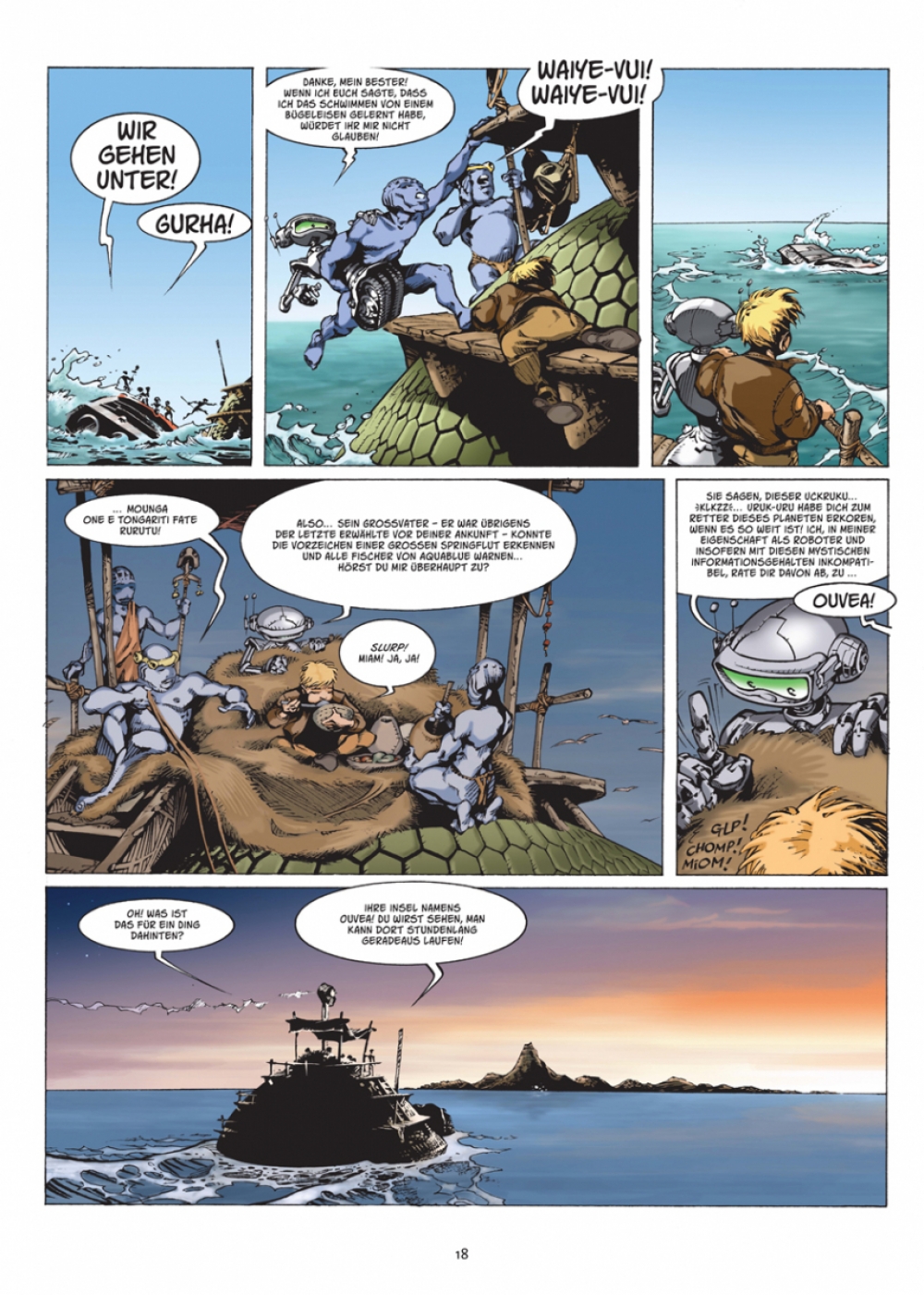Endlich wieder da: der erste Zyklus von »Aquablue«, einem SF-Epos, das bei seinem Debüt vor fast dreißig Jahren einem ganzen Genre neuen Schub verlieh. 1988 veröffentlichten Thierry Cailleteau und Olivier Vatine den Auftakt zu ihrer fantastischen Mischung aus Action, Humor und Abenteuer – dem ganz großen Abenteuer, die zugleich inhaltlich neue Schwerpunkte setzte. Nao, ein irdisches Findelkind, wächst bei den Ureinwohnern von Aquablue auf, menschenähnlichen, blauhäutigen Wesen, die friedlich im Einklang mit der Natur ihres Planeten leben. Dann geraten sie ins Visier eines Rohstoffkonzerns von der Erde, der brutal und skrupellos mit Hilfe von Söldnertruppen und durch Versklavung die Ressourcen des Planeten zu plündern gedenkt. Dem kann Nao nicht tatenlos zusehen... auch ohne »Avatar«. Denn bei aller auffälligen Ähnlichkeit (Ökologie, Profitgier, blaue Haut) kam James Camerons Blockbuster doch erst zwanzig Jahre später in die Kinos. Ein Schelm, wer Arges dabei denkt.