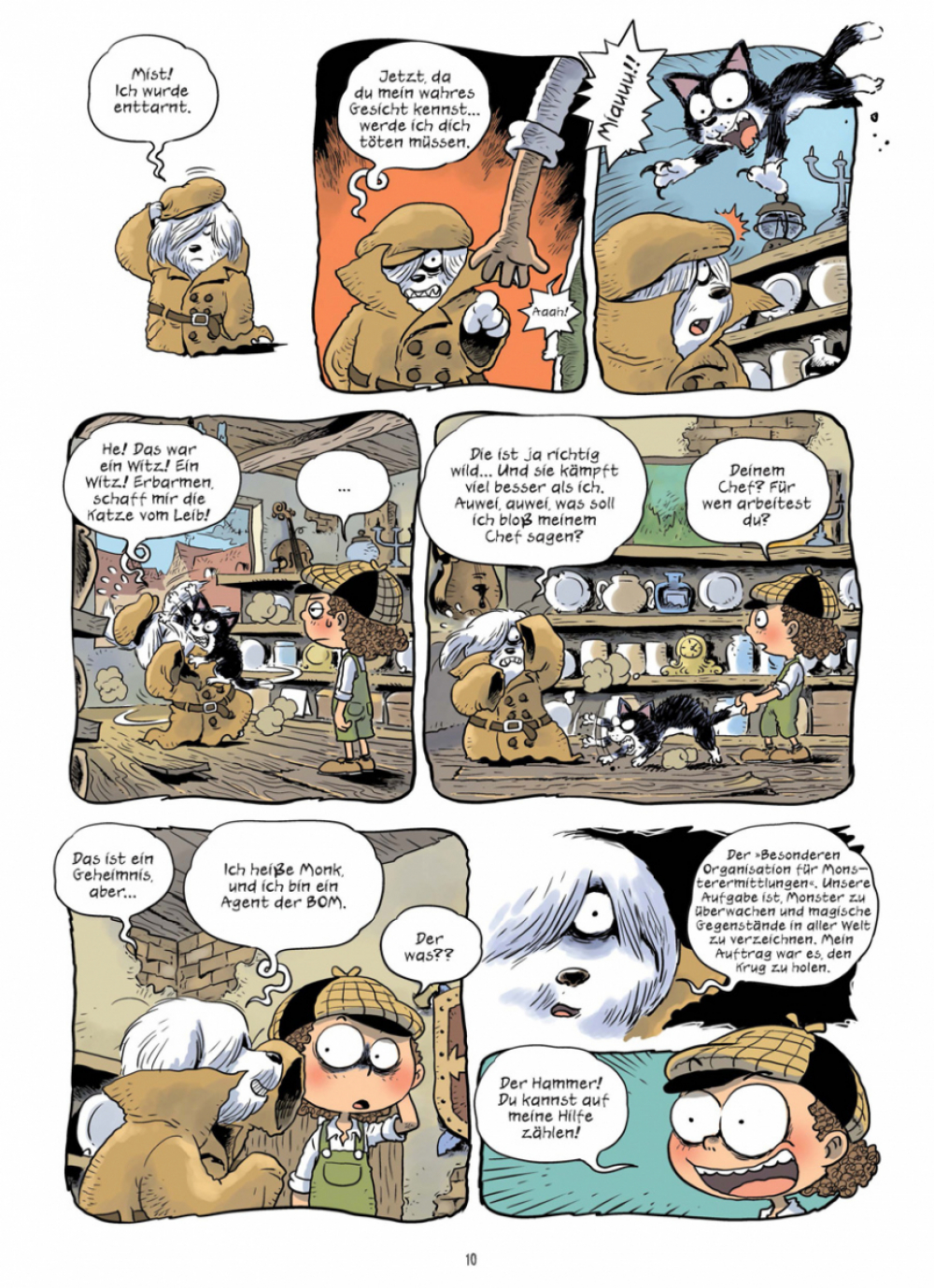 Archibald, ein schüchterner und scharfsinniger Junge, hat einen großen Traum: Er möchte unbedingt Detektiv werden! Aber nicht irgendein Detektiv, denn Archibald will die Geheimnisse jenseits unserer alltäglichen Welt erforschen, dunkle Magie und Monster. Nur leider fehlt ihm bisher ein Fall, um seine Spürnase zu erproben. Als eines Morgens ein einäugiger, ängstlicher und vor allem sprechender Hund vor seiner Tür auftaucht, wittert Archibald seine Chance. Denn der Hund ist ein Junioragent der streng geheimen B.O.M., der »Besonderen Organisation für Monster-Ermittlungen«.