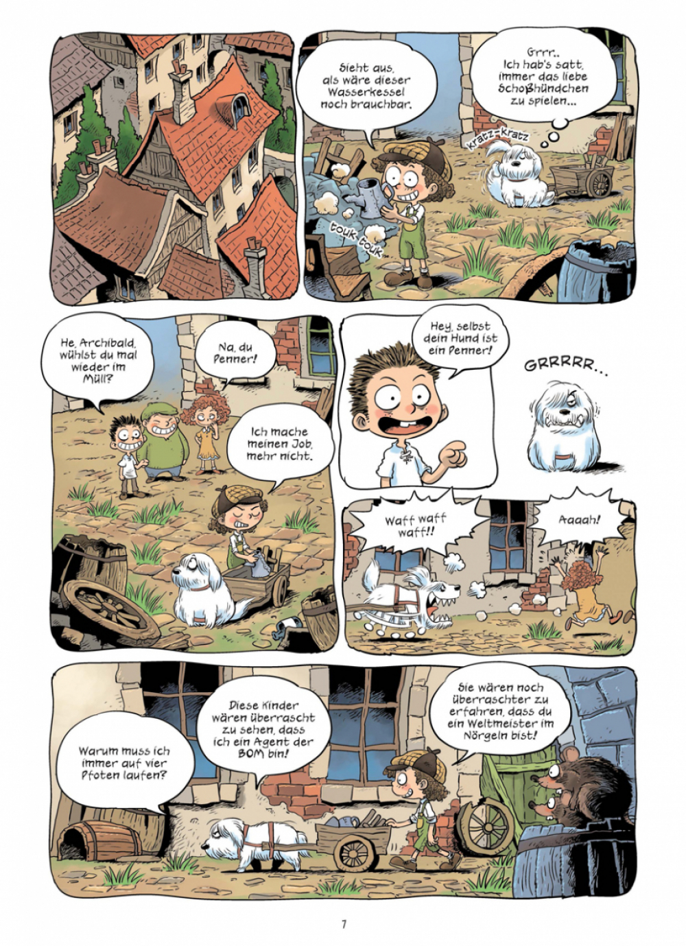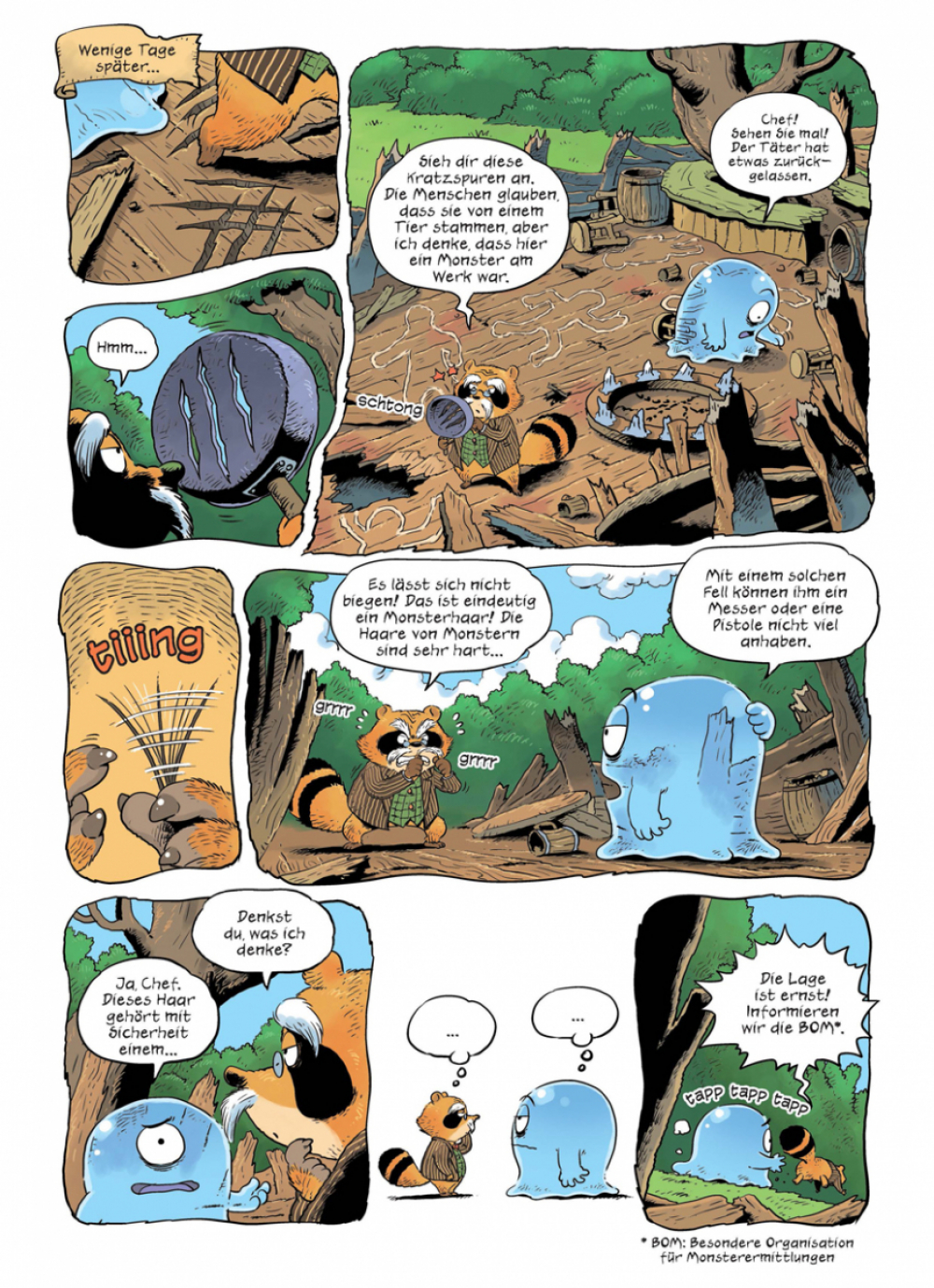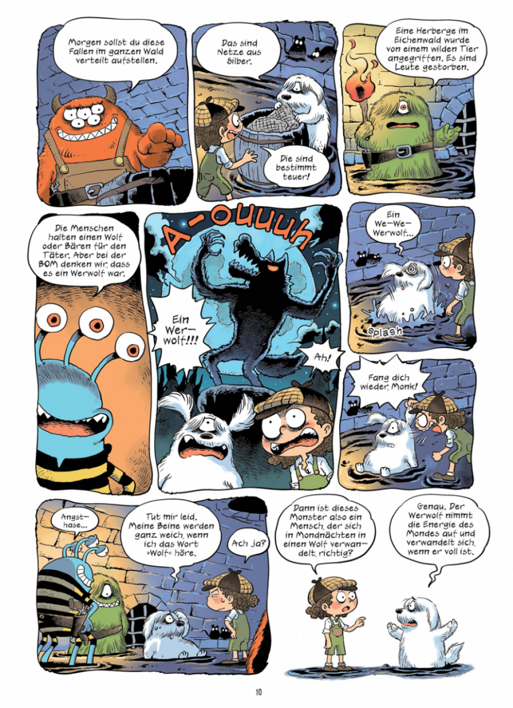 Die B.O.M., die »Besondere Organisation für Monster-Ermittlungen«, ist in heller Aufregung, denn ein mysteriöser Schurke mit übermenschlichen Kräften sucht die Welt der Menschen heim! Graue Haare sind die einzige Spur, die er am Tatort hinterlässt... könnte es Werwolfhaar sein? Denn Archibald hat vor Kurzem erst die Bekanntschaft von Remus gemacht, einem jungen Werwolf, der aus dem Zirkus geflohen ist, in dem er festgehalten wurde, und der seitdem von Dorf zu Dorf zieht. Werden Archibald und sein treuer Hund Monk die Unschuld ihres neuen Freundes beweisen können?