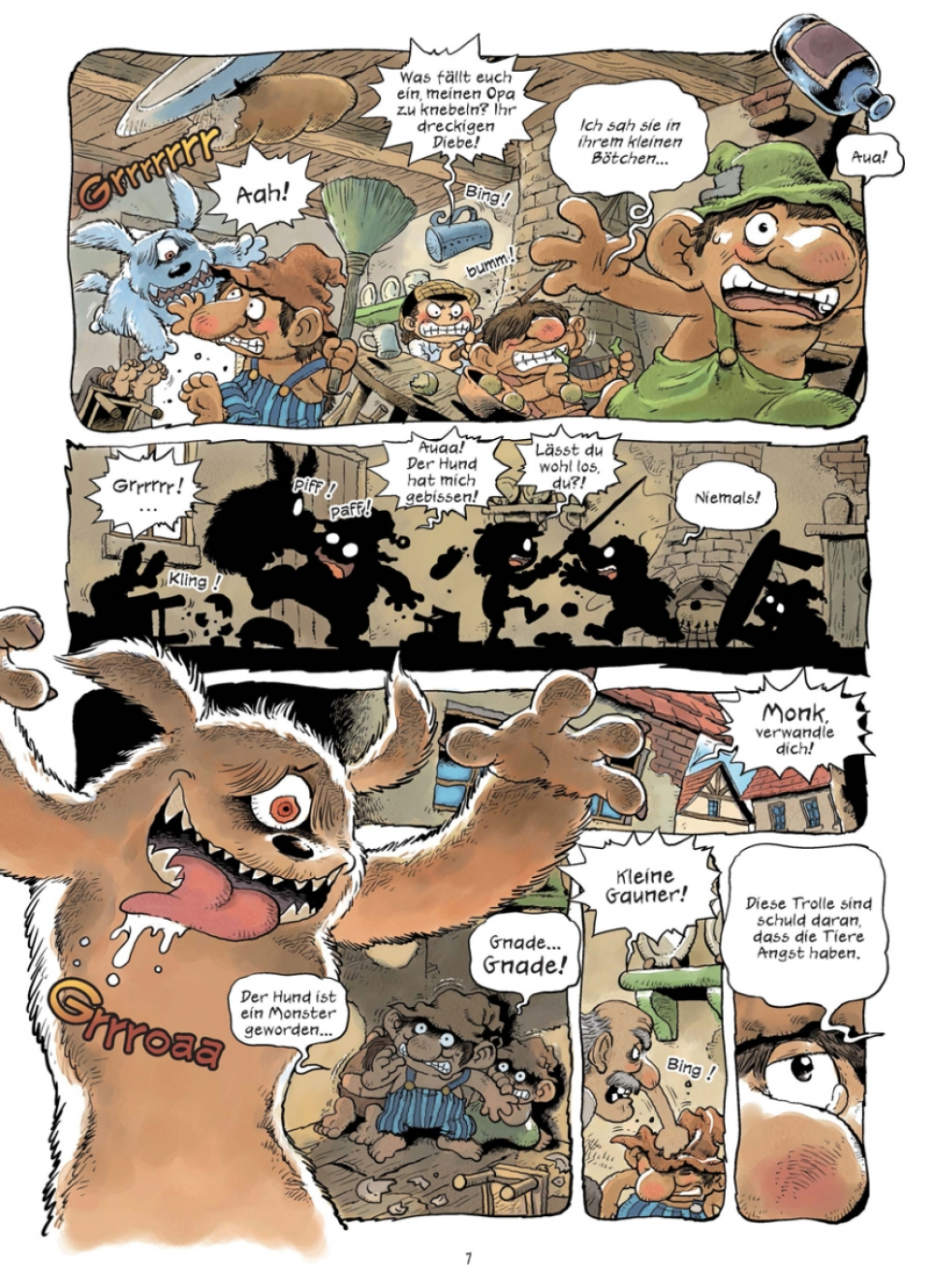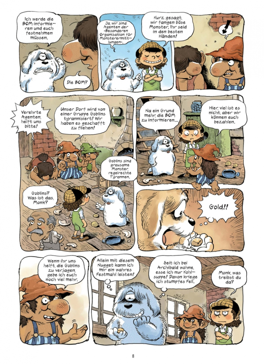 Ein neues Abenteuer für Archibald und Monk, unsere Monsterdetektive in Ausbildung – inklusive einem magischen Schwert, einem unterirdischen Königreich und Kämpfen in Hülle und Fülle: Als drei junge Trolle auf der Flucht vor einer Horde fieser Goblins bei ihnen Zuflucht suchen, ist es für unsere Helden keine Frage, dass sie dem Trio beistehen werden. Monks Spürnase wittert außerdem Gold und Reichtum in der Mine, in der die Trolle tief im Innern der Erde für die grausamen Goblins arbeiten mussten. Deren Anführer ist der schreckliche Tunk, dem Archibald im Duell gegenübertreten muss!