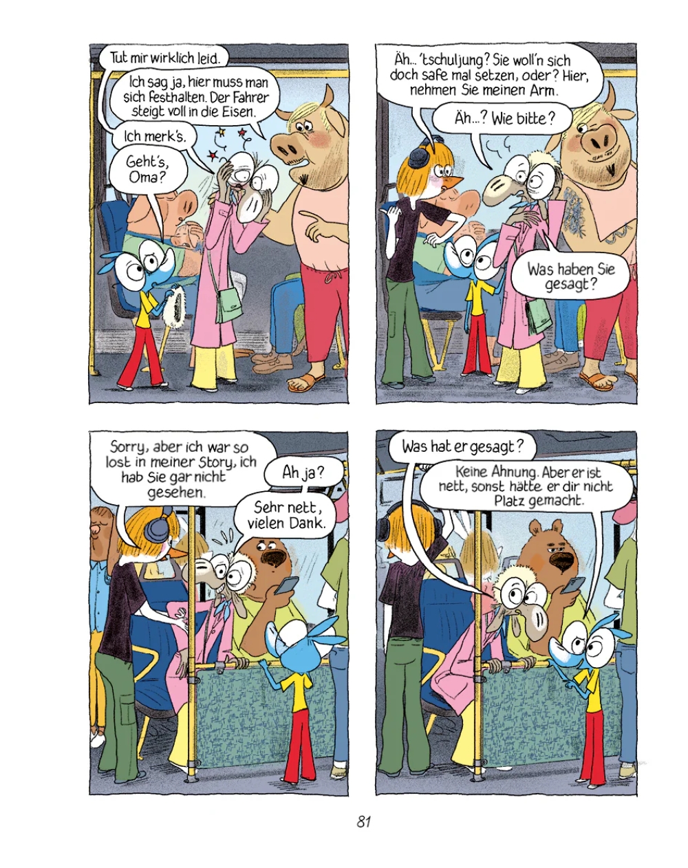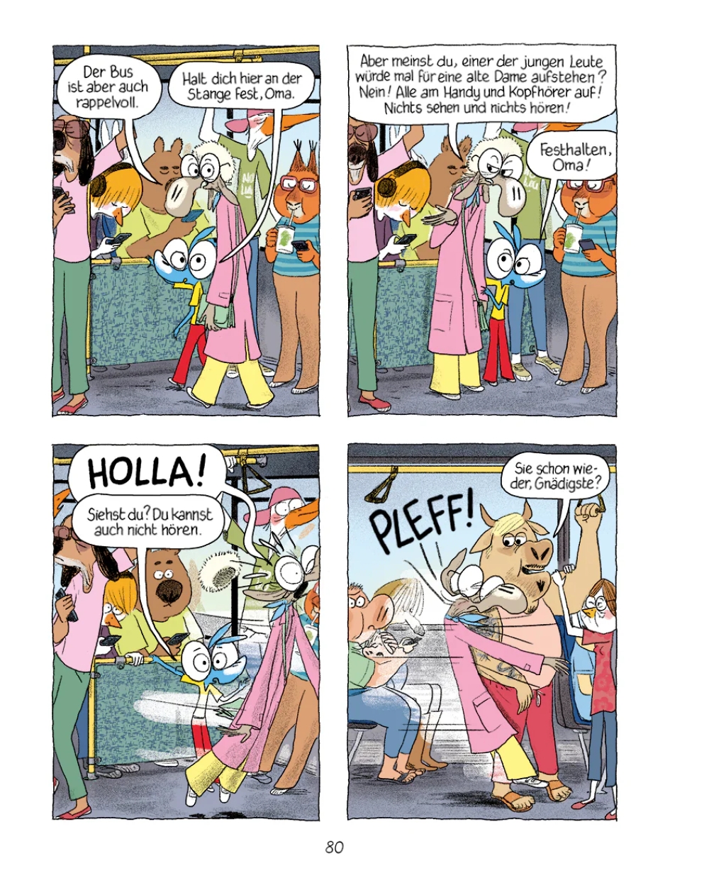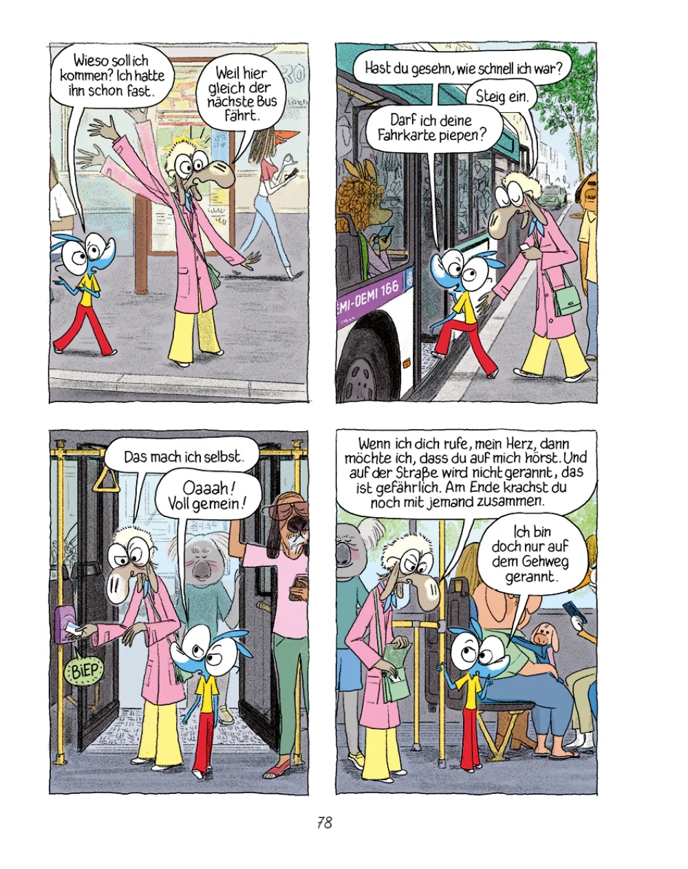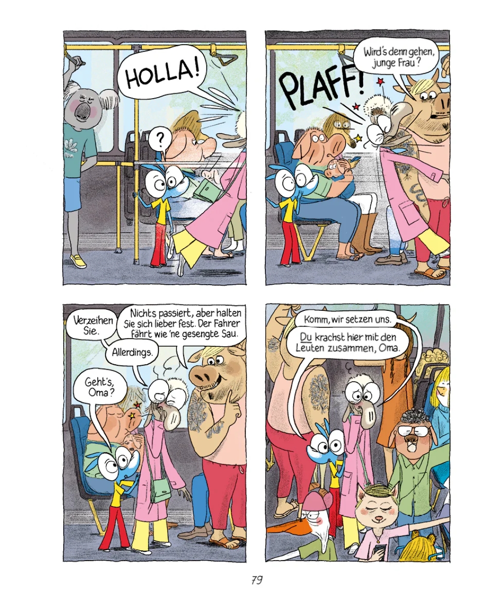 Zwölf neue "Ariol"-Geschichten übers Abschreiben („Psst, Ariol, wie schreibt man 'Bonbon'?“„H-A-U… A-B!“), die geflügelten Worte adeliger Ahnen („Nur weil wir Esel sind, sind wir noch lange keine Esel“) und Steine-Ditschen mit Opa („AAARGH! Mein Ischias!“).