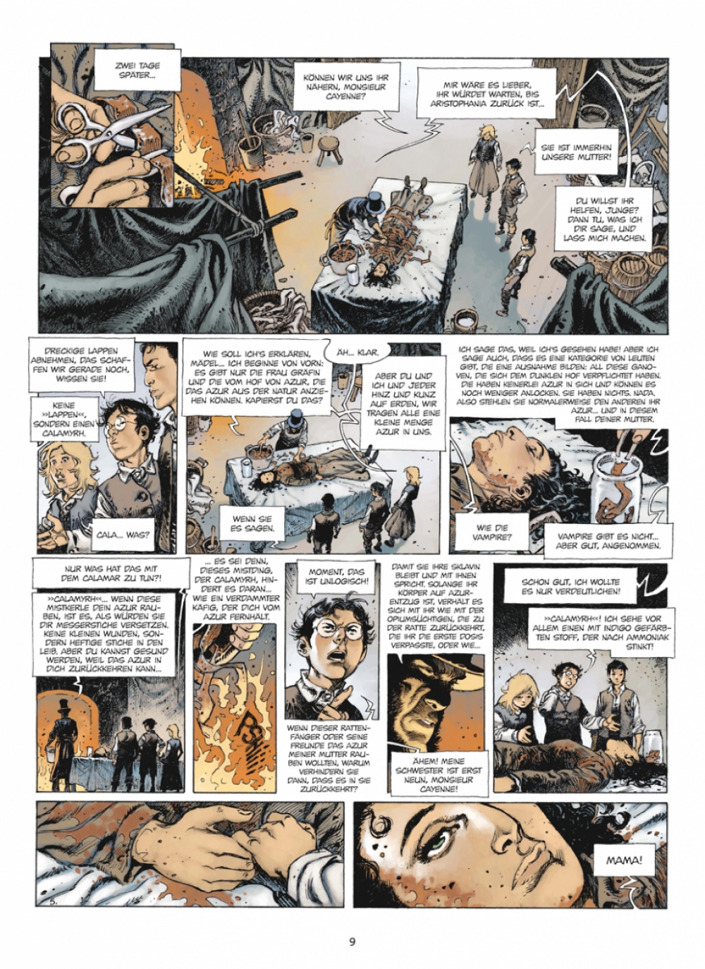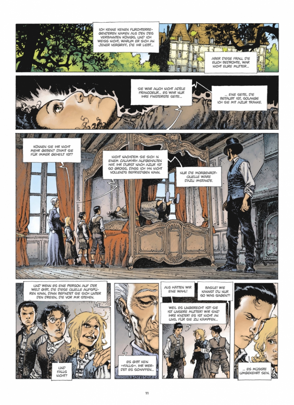 "Die drei Geschwister haben endlich ihre Mutter Adèle wiedergefunden, aber sie befindet sich in einem besorgniserregenden Zustand. Der verbannte König hat sie ihres Kraft beraubt und verhindert zugleich, dass die Energie in ihren Körper zurückkehren kann. Aber Adèle ist nicht Aristophanias einzige Sorge: Die Macht der Calamyrhen versetzt das Königreich Azur in in Aufregung. Mit einer solchen Waffe in seinen Händen könnte der verbannte König den Krieg, der sich am Horizont abzeichnet, mit Leichtigkeit gewinnen. Die Zerstörung dieser Macht hat daher höchste Priorität, und nur Aurore kann seine Pläne durchkreuzen und die Mutter der Kinder retten.
