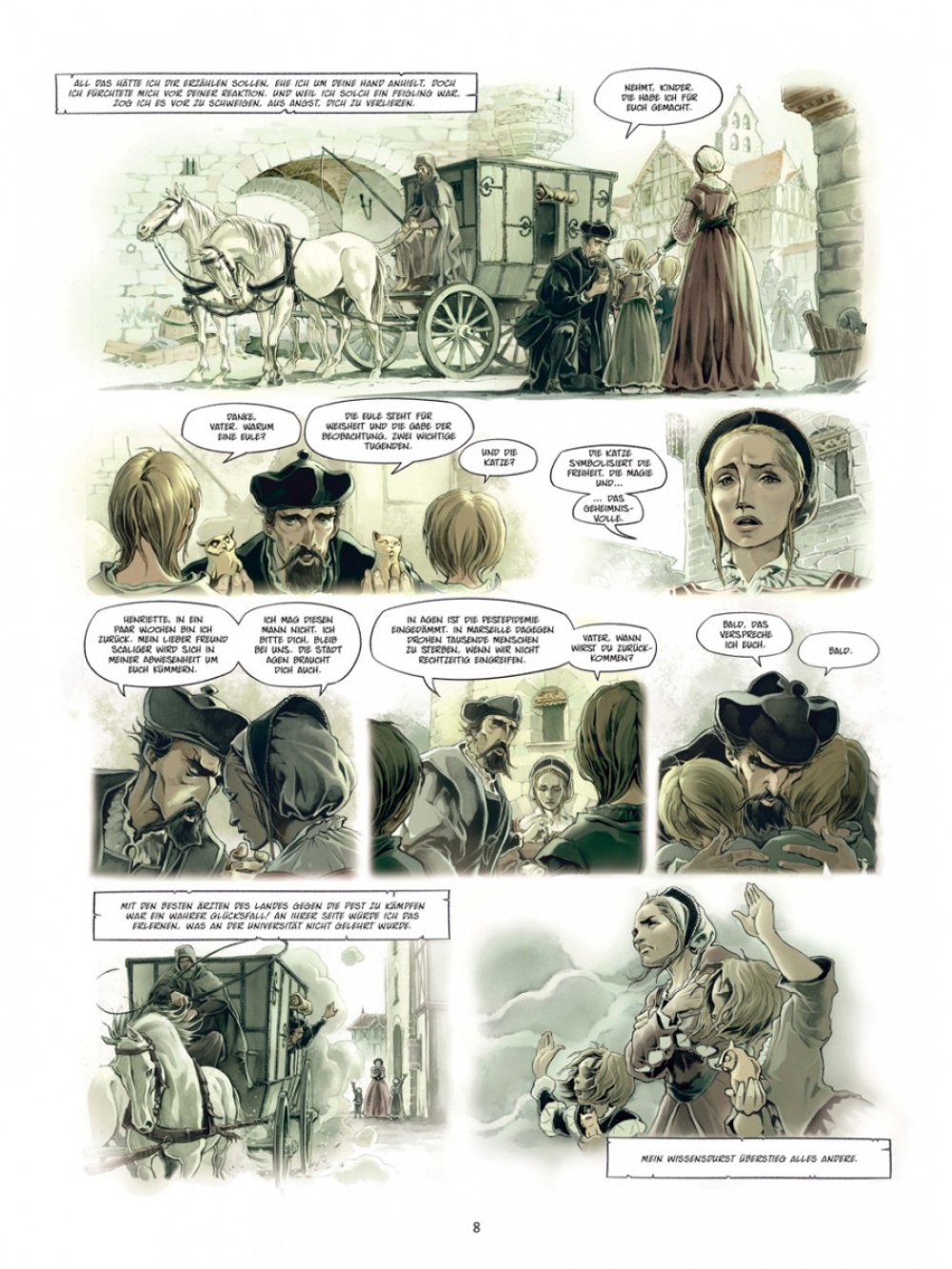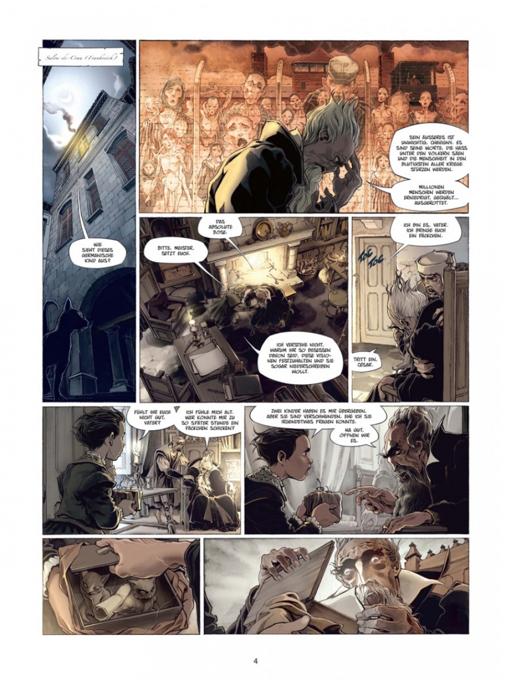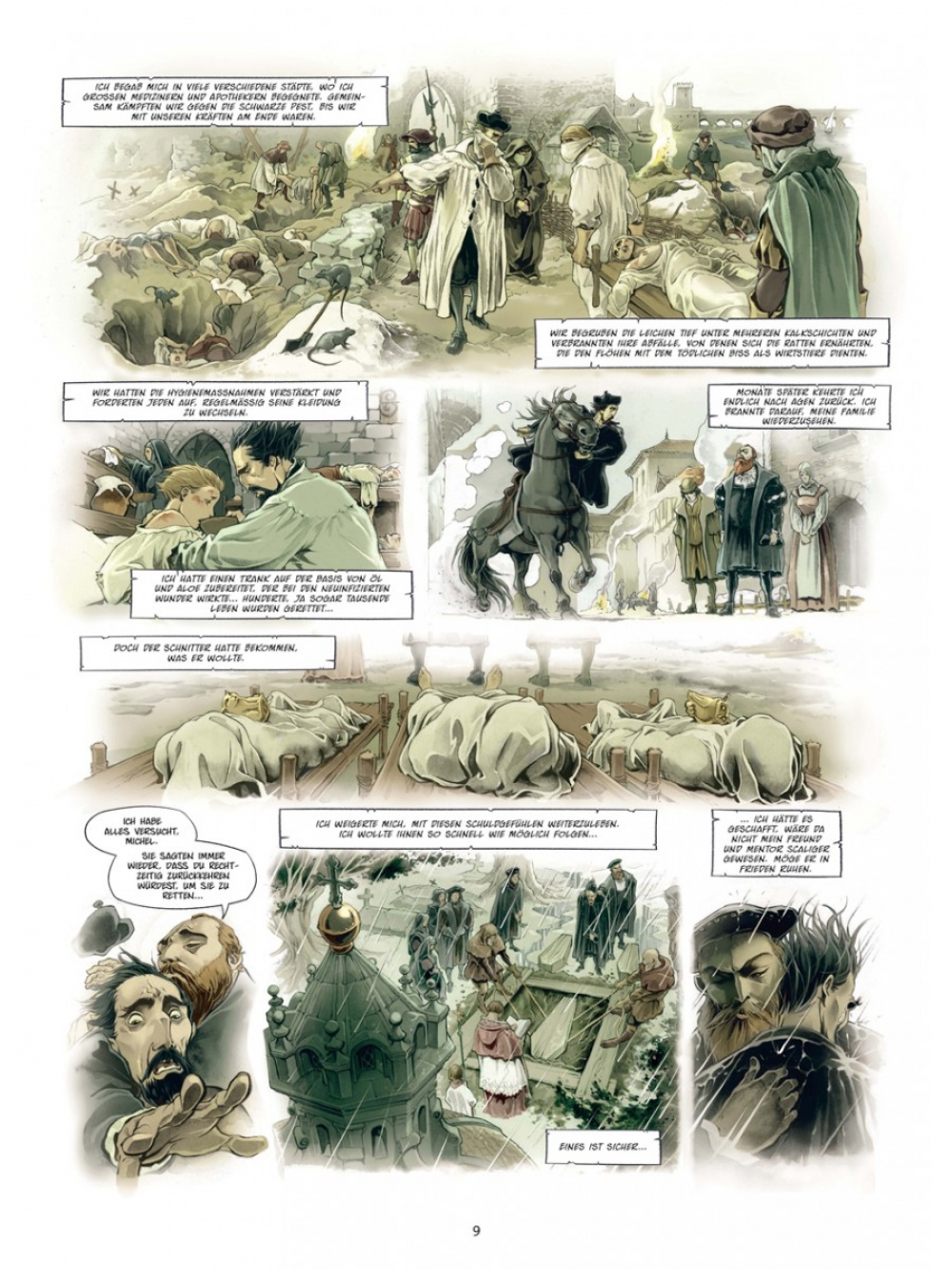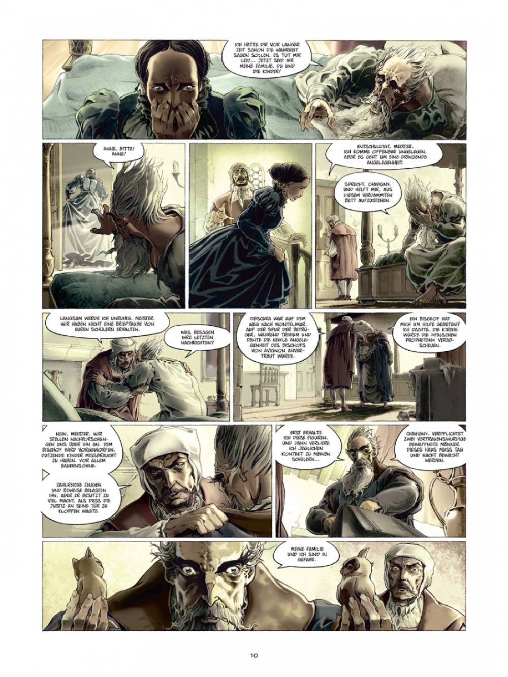 Nostradamus ist alt geworden und wird von Visionen geplagt. Der berühmte Arzt und Wahrsager des 16. Jahrhunderts lebt zurückgezogen in der Provence, doch seine drei Schüler Angulus Dante, Angelica Obscura und Arthus Trivium durchstreifen in seinem Auftrag das Land auf der Suche nach Rätseln, die weder Wissenschaft noch Religion zu lösen vermögen. Da erhält er eines Morgens ein mysteriöses Päckchen, das an ein Geheimnis aus seiner eigenen Vergangenheit appelliert. Nostradamus sieht sich unmittelbar bedroht – und von seinen Schülern kein Wort… Eine neue, packende Erzählung um Machtspiele und Einfluss vor historischem Hintergrund, getrieben von Visionen und Aberglaube – in einer faszinierenden Optik, zu Hochspannung modelliert.