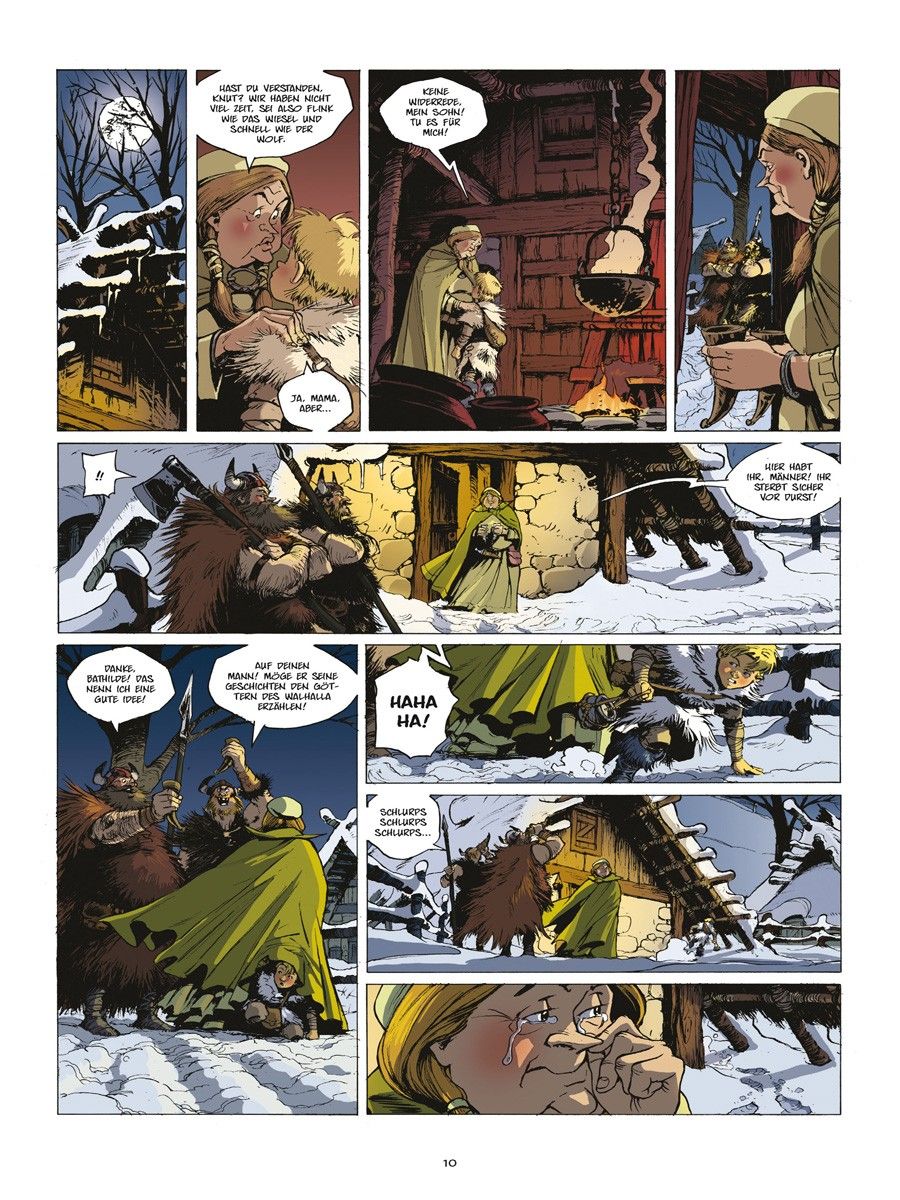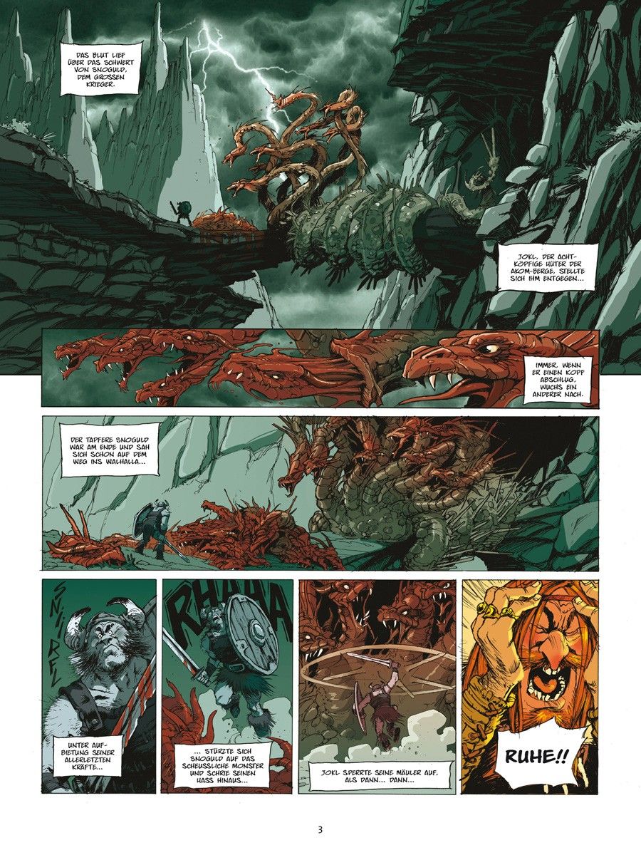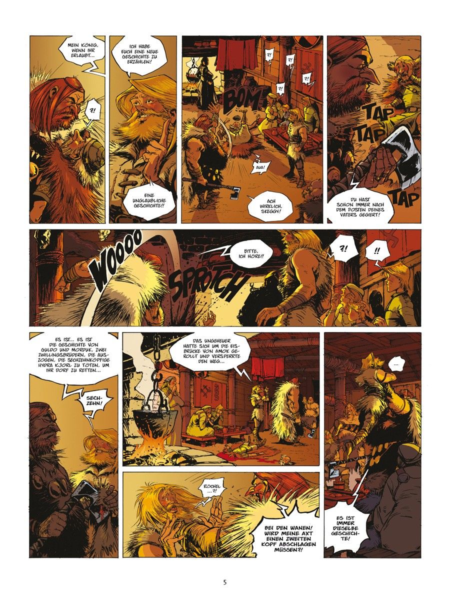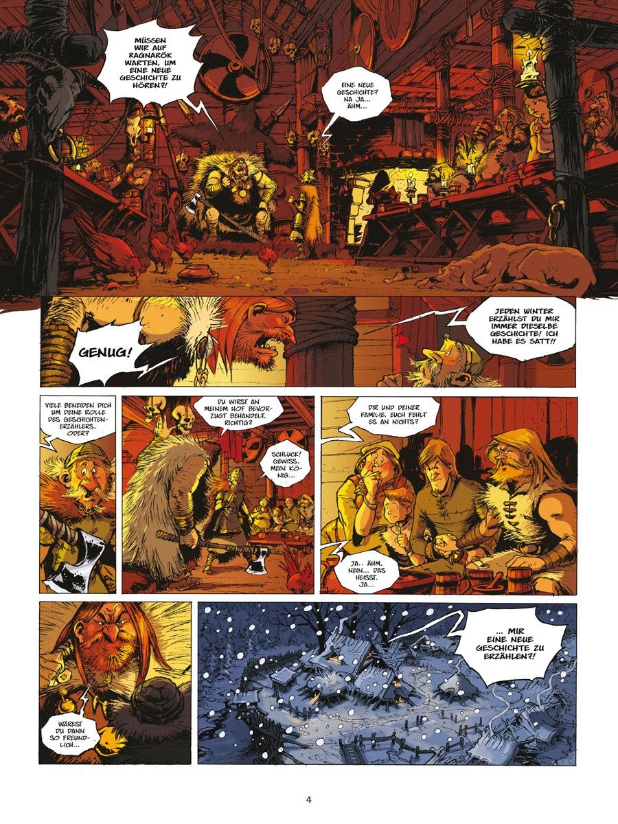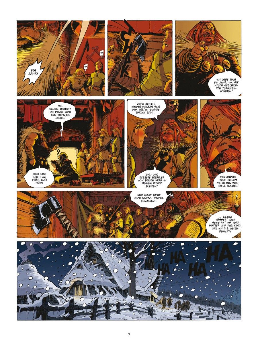 Skeggy lässt sich mit dem blutrünstigen Roal dem Einäugigen ein, während Sligand an Bord der Aslak geht, dem wohl armseligsten Schiff des Königreichs, und sich von der waghalsigen Kapitänin Brynhild zur Insel bringen lässt, auf der der berühmte Geschichtenerzähler ausgebildet worden sein soll.