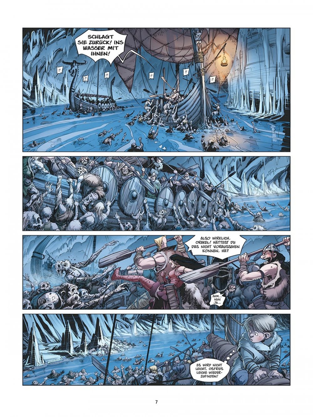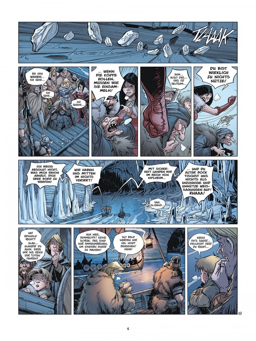 Skeggy lässt sich mit dem blutrünstigen Roal dem Einäugigen ein, während Sligand an Bord der Aslak geht, dem wohl armseligsten Schiff des Königreichs, und sich von der waghalsigen Kapitänin Brynhild zur Insel bringen lässt, auf der der berühmte Geschichtenerzähler ausgebildet worden sein soll.