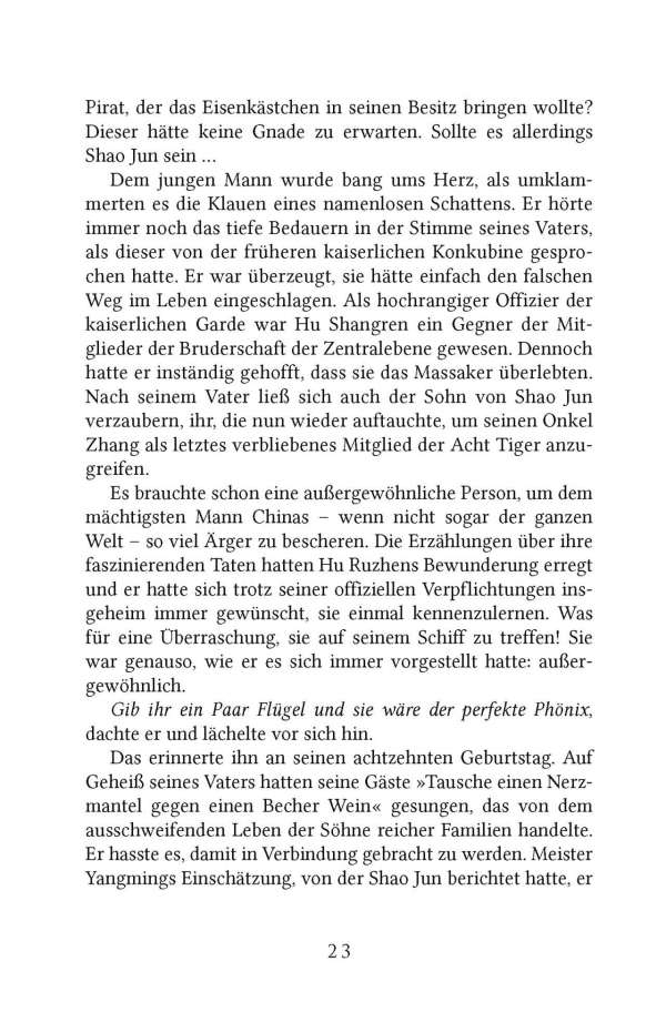 Die Bruderschaft der Assassinen wurde vom chinesischen Kaiser so gut wie ausgerottet. Es ist keine leichte Aufgabe, den Orden zu seinem früheren Ruhm zurückzuführen, aber es ist Shao Juns Pflicht und ihre beste Chance zu überleben. Als sie erfährt, dass ein alter Feind in den Besitz eines mächtigen Artefakts gekommen ist, mit dem er alle verbliebenen Attentäter in den Tod locken will, eilt Shao Jun in die Mongolei. Dort wird sie in die politischen Intrigen zwischen dem mongolischen Königshaus, einem im Exil lebenden Prinzen und den tödlichen Spannungen zwischen der Mongolei und China hineingezogen. Doch als sie entdeckt, dass ein noch finstererer Akteur hinter den Intrigen steckt, der Monster für eine brutale Übernahme der Region erschafft, schwört Shao Jun, alles in ihrer Macht Stehende zu tun, um dies zu verhindern.