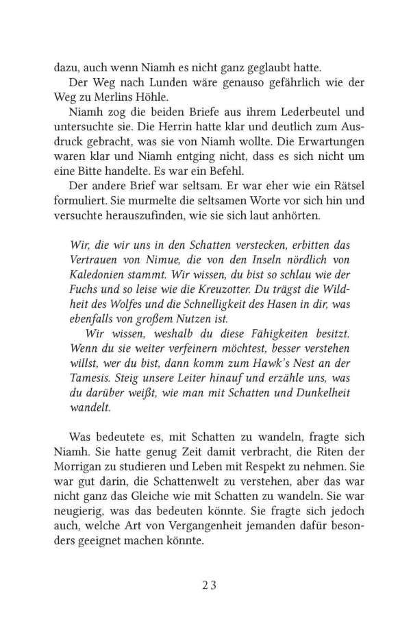 Mercia, 878. Die Hexenkriegerin Niamh entdeckt, dass ein neuer Orden namens „die Verborgenen“ versucht, in Lunden Fuß zu fassen. Ihr Land ist bereits von Wikingerüberfällen, blutigen Kriegen und aufeinanderprallenden Kulturen gezeichnet. Entschlossen, das zu schützen, was von ihrer Heimat übrig geblieben ist, schleicht sie sich in diese neue Gruppe ein, um herauszufinden, ob diese auf ihrer Seite steht … oder gegen sie ist. Doch als Niamh erfährt, dass die Verborgenen ein Artefakt gestohlen haben, das ihrem Volk heilig ist, wird ihre eigene Loyalität in Frage gestellt. Niamh wirft neu gewonnene Allianzen und Freundschaften über den Haufen und entdeckt bald, dass Verrat einen hohen Preis hat. Sie wird alles in ihrer Macht Stehende tun müssen, um zu überleben – wenn ihre Götter es so wollen.