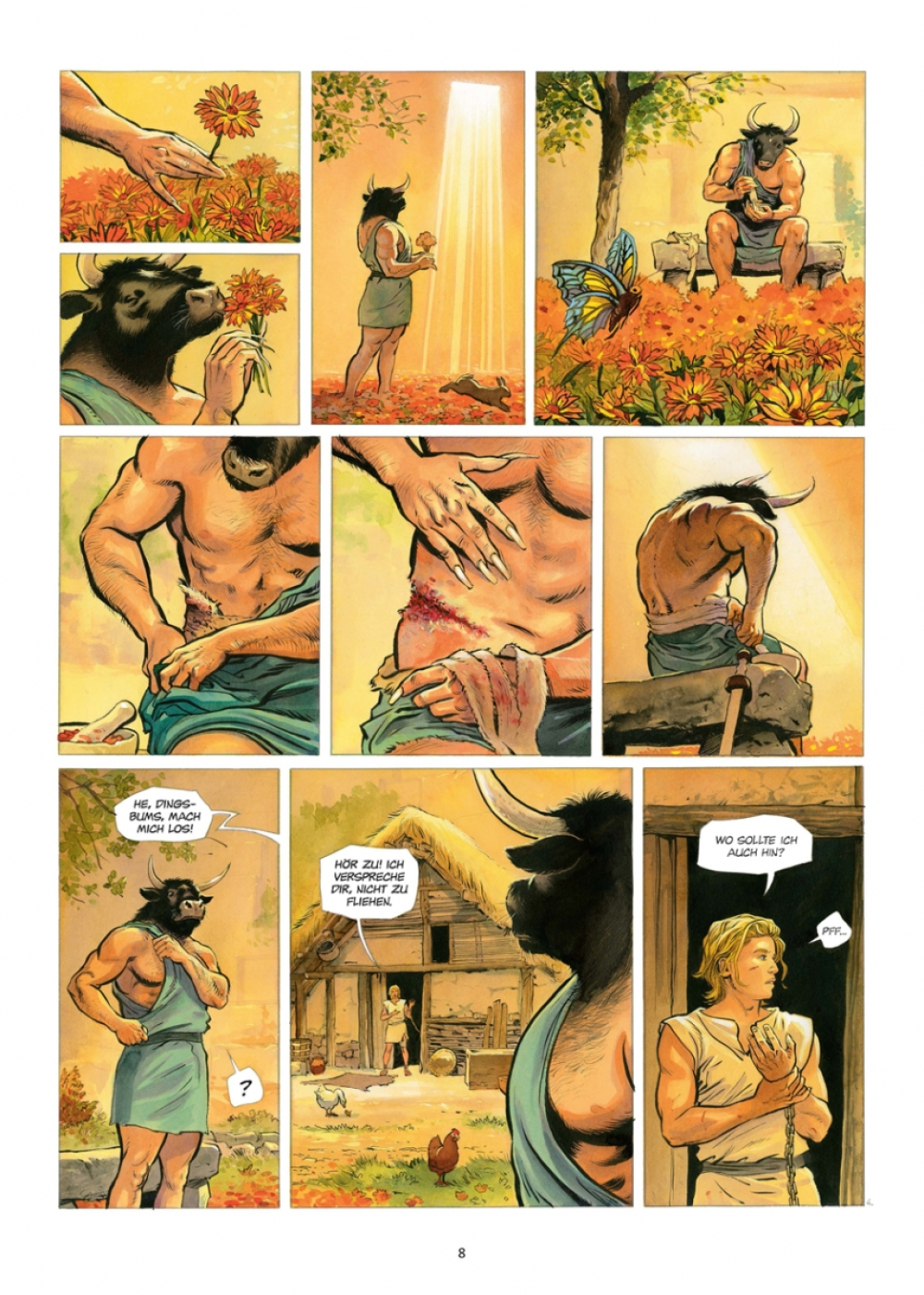 Mensch oder Monster? Serge Le Tendre macht aus dem Mythos des Minotauren eine anrührende Geschichte, tragisch und nachdenklich, die von Patrick Peynet in wunderschönen Bildern erzählt wird.