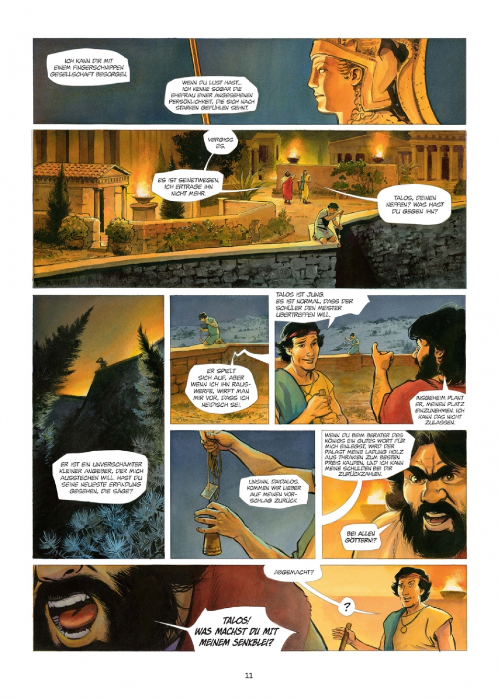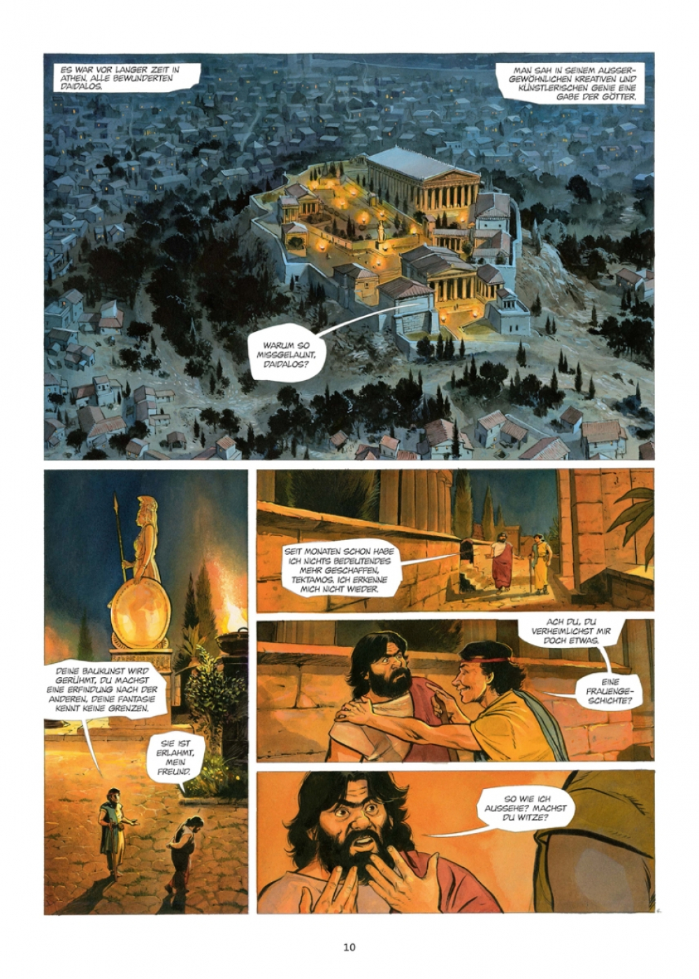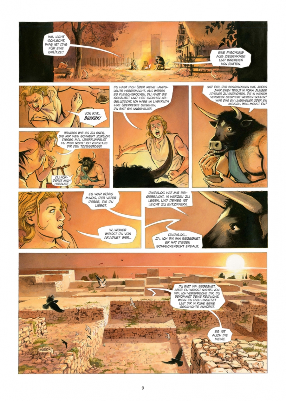 In der Folge eines tragischen Unfalls, bei dem sein eigener Sohn den Tod fand, sieht sich der berühmte Architekt Daedalus gezwungen, Ahten zu verlassen und nach Kreta zu fliehen. Dort streiten sich drei Brüder um den unbesetzten Thron. Einer von ihnen, Minos mit Namen, geht einen Pakt mit dem Gott Poseidon ein, der einen herrlichen Stier aus dem Meer entsteigen lässt, wodurch sich Minos' Vorhersage erfüllt und er zum König wird. Doch er bricht seinen Teil des Paktes, und Poseidon bestraft ihn dafür schwer: Er zwingt die Königin, sich mit dem Stier einzulassen, und aus der unnatürlichen Vereinigung entsteht ein monströses Kind, halb Mensch, halb Tier – der Minotaurus! Entsetzt bittet Minos Daedalus darum, das Untier einzusperren, und der Architekt errichtet das Labyrinth zu diesem Zweck. Bis eines Tages der Held Theseus auf Kreta erscheint, um den Minotaurus mithilfe der Prinzessin Ariadne zu töten...