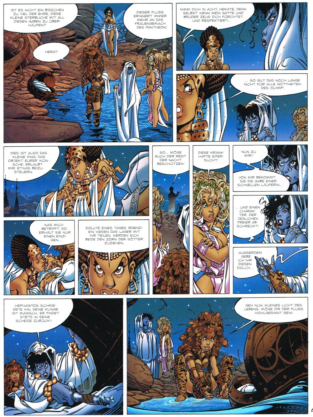 Das Griechenland der Mythologie. Aus dieser Epoche wurden uns die wunderbarsten Legenden überliefert. Und dies ist eine von ihnen: die fantastische Legende von Atalante. Gleich nach ihrer Geburt von ihrem Vater ausgesetzt und von der Göttin Hera dazu verurteilt, ohne Liebe zu leben, wird sie von Waldwesen aufgenommen. Die Nymphen, Satyre und Dryaden lehren sie die Sprache der Tiere. Zur schönen Abenteuerin herangewachsen, begleitet sie die Argonauten auf ihrer Suche nach dem Goldenen Vlies. Ihr ist es als einziger Frau erlaubt, den großen griechischen Helden auf diesem fantastischen Abenteuer zu folgen.