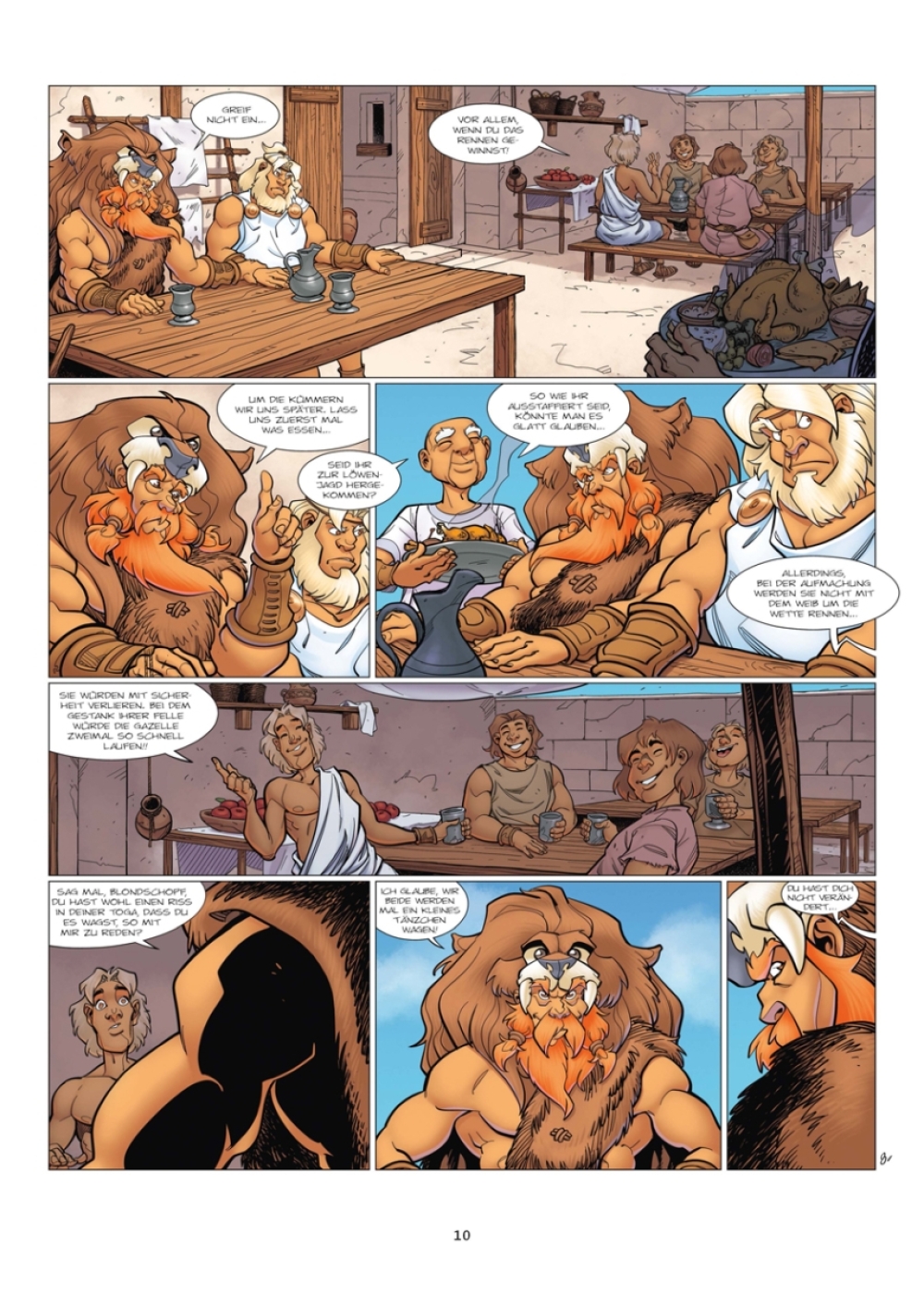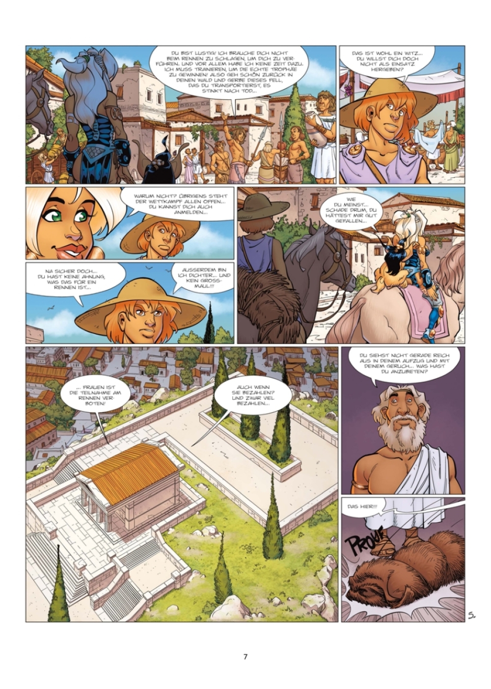 Atalante nimmt an ihrem letzten Rennen teil und verspricht, denjenigen zu heiraten, dem es gelingt, sie zu besiegen. Jedoch lässt sie sich mit Absicht von einem Teilnehmer schlagen, der ihr Herz erobert hat. Als das junge Paar im Tempel der Aphrodite angelt, ziehen sie den Zorn der Göttin auf sich und werden in Löwen verwandelt. Alle Welt und auch ihr treuer Begleiter Pyros befürchten das Schlimmste…
