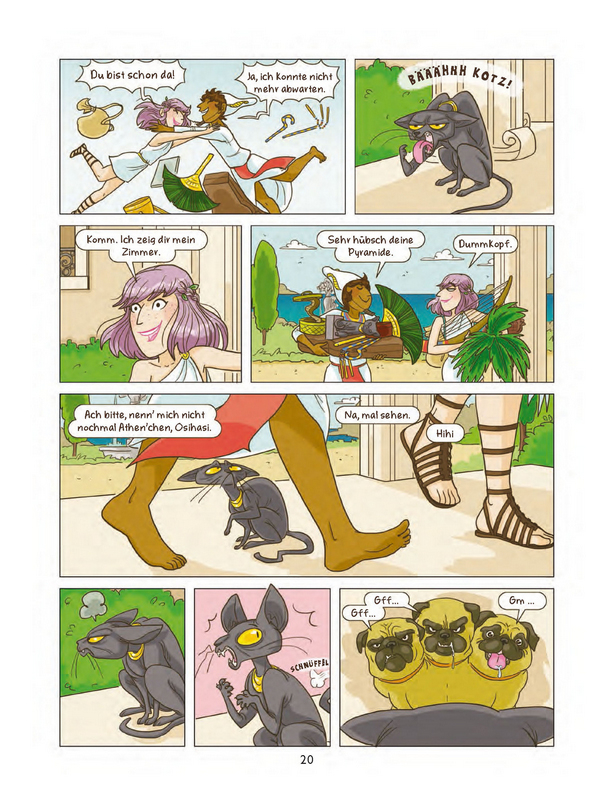 Klar, Schule nervt mitunter, gerade als Teenage-Göttin. Besonders die oberlangweiligen Mathestunden bei Pythagoras sind ein Graus. Der Schauspiel-Unterricht von Kirke ist da schon eher nach Athenas Geschmack. Aber das Beste: In den Ferien steht der Besuch ihres ägyptischen Brieffreunds Osiris bevor.