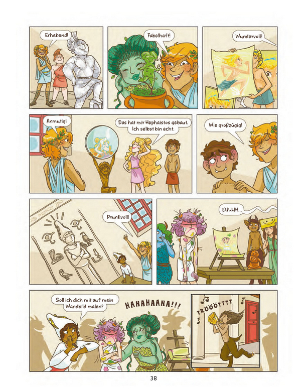 Sibylline und Frédéric Bagères verweben gekonnt griechische mit ägyptischer Mythologie und spinnen daraus eine pfiffige Episoden-Handlung. Marie Voyelles setzt mit dynamischen Bildern in frischen Farben ihren unverwechselbaren Pinselstrich hinzu. So entsteht eine Reihe für Mädchen und Jungen ab ca. 9 Jahren, mit der auf spielerische Art der Einstieg in die Mythologie gelingt.