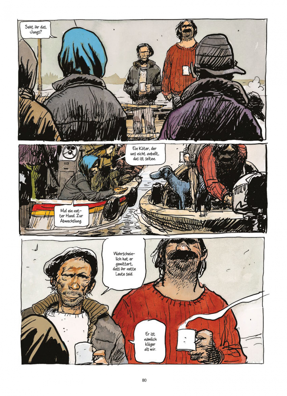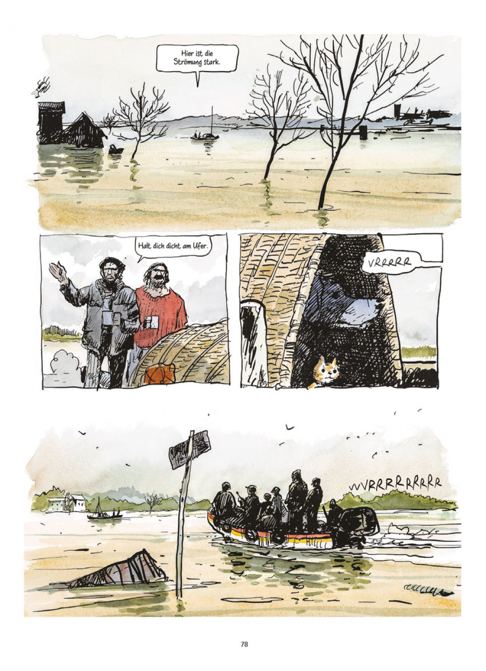 Das Wasser steigt überall und die Menschen haben gelernt, auch damit zu leben. Doch Jeanne Vogel und ihre erwachsenen Söhne, Hans und Gorza, sowie der telepathische Hund weigern sich, in die staatlich verordneten Unterkünfte zu ziehen – in diese „klimatisierte, gesicherte, abgedichtete und versiegelte Hölle”.