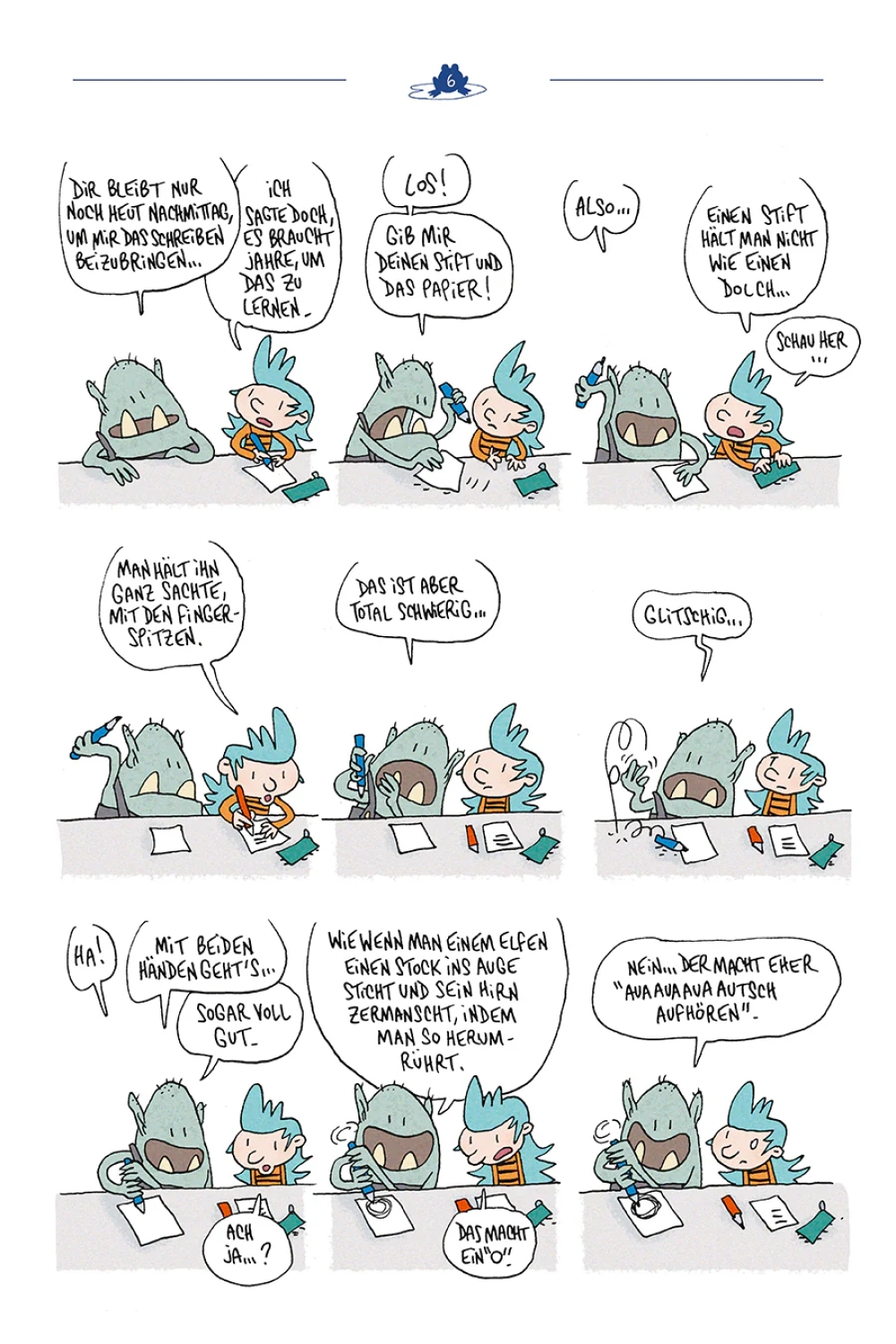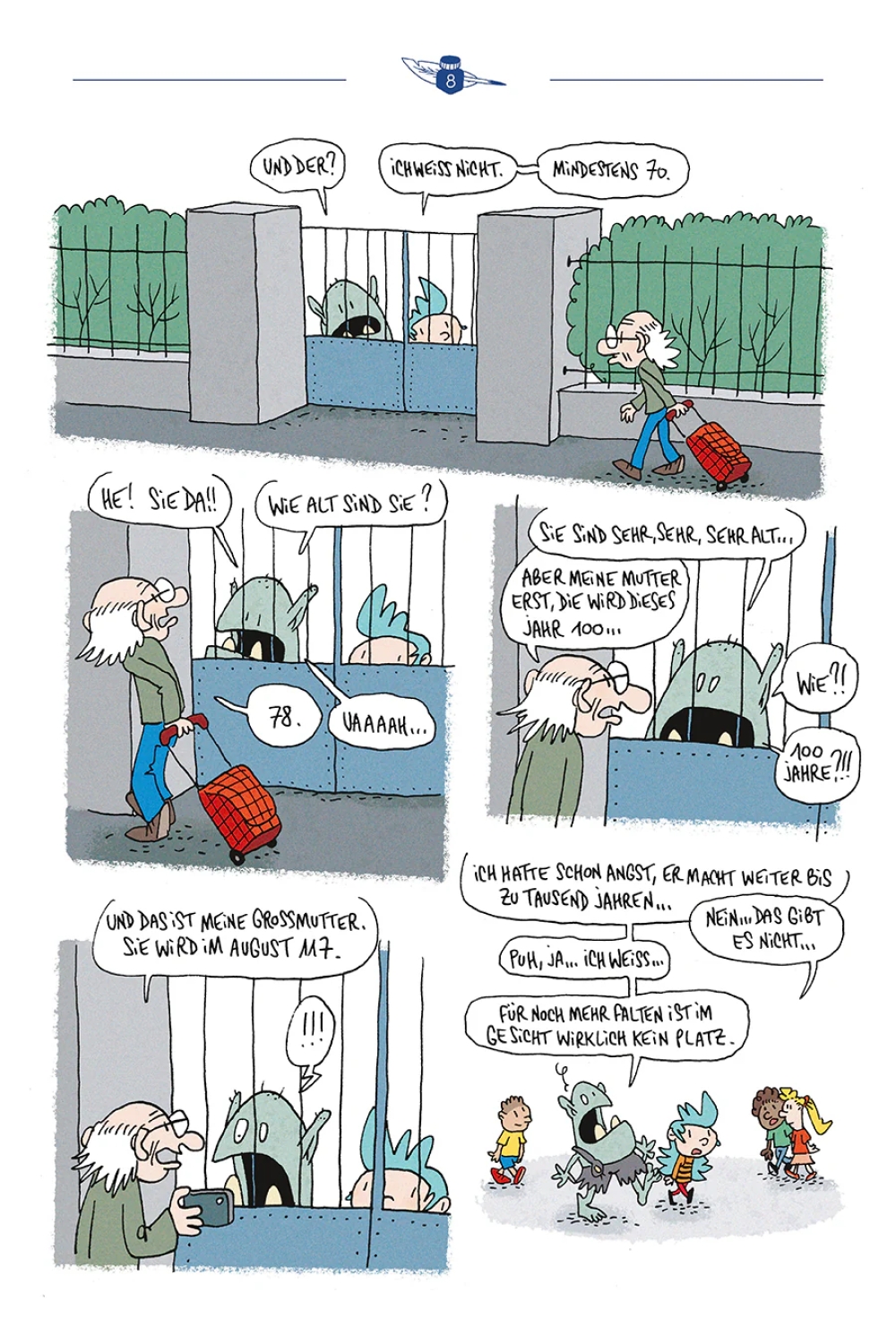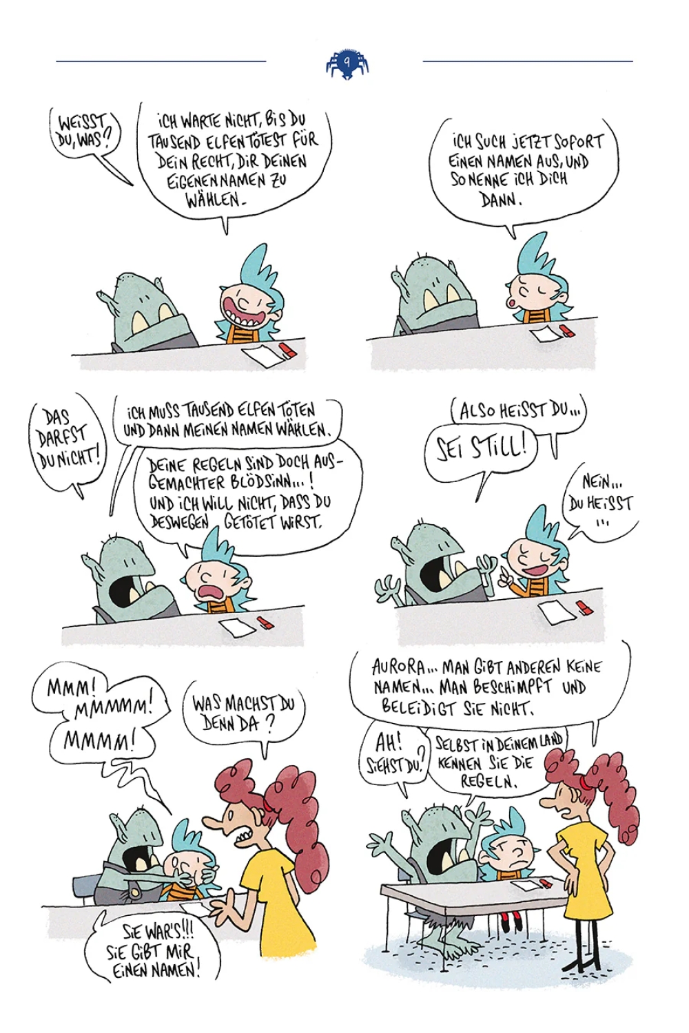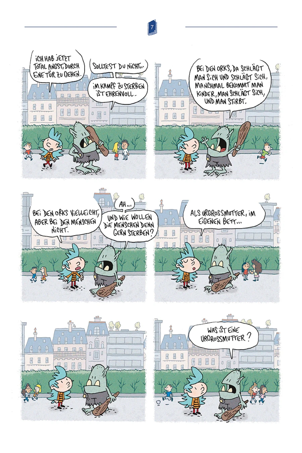 Der unermüdliche Lewis Trondheim legt mit "Aurora und der Ork" eine neue Serie vor, in der er fantastische Elemente in den Schulalltag trägt und sich gleichermaßen an ein Lesepublikum von Kindern als auch an Erwachsene richtet. In "Aurora und der Ork" geschehen gruselige Dinge, aber zumeist nur in der Vorstellung der Leser:innen. Ein schrecklicher Lesespaß!