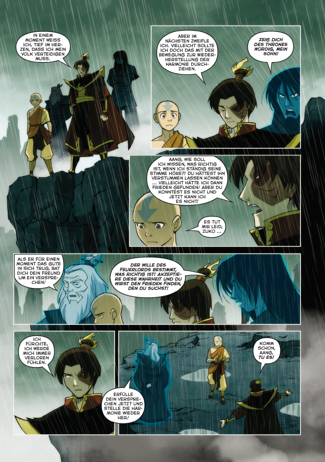 Die Zeit des Friedens war von kurzer Dauer! Das Erdkönigreich und die Feuernation mobilisieren ihre Armeen für die letzte Schlacht. In Yu Dao hat man sich so gut es geht auf den Wiederausbruch des Krieges vorbereitet. Doch muss sich jetzt ein jeder Bewohner der Stadt, die nun seit fast 100 Jahren eine gemischte Gesellschaft kennt, fragen, für welche Seite er oder sie kämpfen wird … Und während Aang und seine Freunde alle Hebel in Bewegung zu setzen versuchen, um dem erneuten Krieg eine jähes Ende zu bereiten, ringt der Avatar mit sich selbst, ob er das Versprechen über Leben und Tod, das er Zuko gab, wird einhalten … einhalten müssen, um dem Schrecken ein für allemal ein Ende zu setzen!